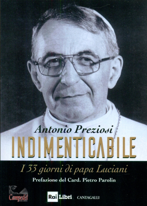 Indimenticabile. I 33 giorni di papa Luciani di Antonio Preziosi, Angelo Becciu Editore: Cantagalli Collana: il fuoco ha da ardere A quarant'anni dall'elezione e dalla morte avvenuta dopo appena 33 giorni, con chiarezza e rigore giornalistico, Antonio Preziosi ricostruisce la portata innovativa del breve pontificato di Albino Luciani, salito al soglio di Pietro con il nome di Giovanni Paolo I. Si racconteranno i gesti, i discorsi, le premonizioni, i segni che annunciarono e poi costituirono un pontificato destinato ad aprire una fase nuova nella vita della Chiesa, i cui semi germoglieranno con san Giovanni Paolo II, Benedetto XVI e papa Francesco. L'autore non manca di affrontare con schiettezza anche il tema del cosiddetto "mistero della morte", cercando di offrire un contributo originale e senza tesi precostituite alla realtà storica dei fatti. Prefazione del card. Pietro Parolin. Con un'intervista al card. Angelo Becciu. | |