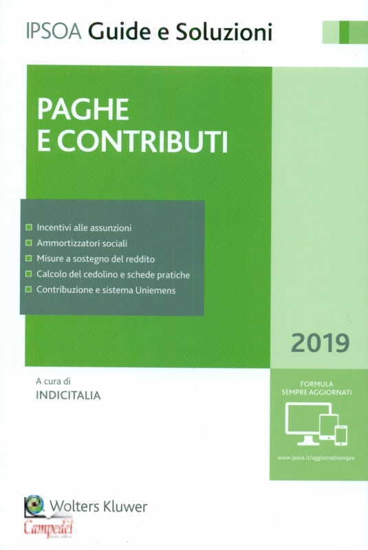 Paghe e contributi di Indicitalia (a cura di) Pubblicato da Wolters Kluwer Collana Ipsoa Guide e soluzioni Il volume garantisce inquadramento di sintesi degli argomenti corredato da un'ampia selezione di fonti normative; completezza dei temi trattati; aggiornamento con le più recenti disposizioni normative e con i chiarimenti della prassi amministrativa; praticità grazie alla ricchezza di esempi e casi particolari vicini alta pratica quotidiana. È una guida operativa per gli adempi menti, sia di fonte legale che contrattuale collettiva, connessi all'amministrazione del personale dipendente. Oltre ad un completo quadro d'insieme della materia, il volume offre istruzioni operative e soluzioni applicative in ordine all'elaborazione degli stipendi, la determinazione dei contributi previdenziali, dei premi assicurativi e delle ritenute fiscali, nonché della presentazione delle relative denunce obbligatorie. L'opera è completata da un'ampia sezione tabellare e da un indice analitico. < br> | |