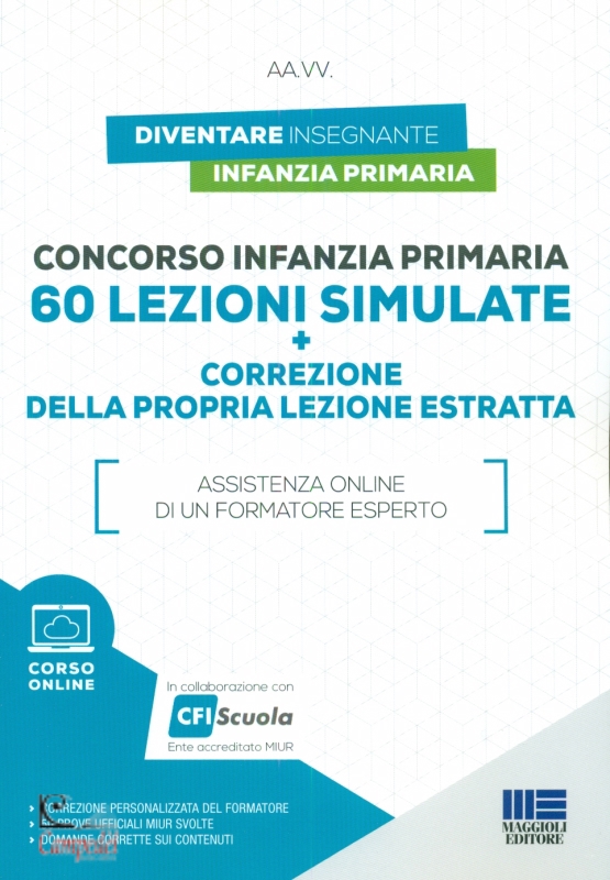 Concorso infanzia primaria 60 lezioni simulate e correzione della propria lezione estratta Autori Autori Vari Editore Maggioli Editore Collana Concorsi a cattedre – Diventare insegnante LIBRO + VIDEOCORSO ASSISTENZA ONLINE DA UN FORMATORE ESPERTO • CORREZIONE PERSONALIZZATA DEL FORMATORE • 50 PROVE UFFICIALI MIUR SVOLTE • DOMANDE CORRETTE SUI CONTENUTI In collaborazione con CFI Scuola, Ente accreditato MIUR Vi presentiamo un nuovo prodotto editoriale per la preparazione dei candidati alla prova orale del Concorso straordinario Infanzia Primaria, composto da: - volume “Lezioni simulate per la prova orale” di Pietro Boccia; - corso online erogato da CFIScuola, ente qualificato dal MIUR per la formazione del personale scolastico. Il volume è uno strumento utilissimo per chi affronta la prova orale del Concorso straordinario per i docenti della scuola dell’infanzia e primaria (d.m. 17 ottobre 2018). L’obiettivo della prova orale è stabilire alcuni requisiti, che gli aspiranti candidati devono possedere, per intraprendere la professione di insegnante, vale a dire: › la padronanza dei saperi e delle discipline; › le strategie comunicative nel rapporto educativo; › la capacità operativa nella progettazione educativa e didattica; › la competenza a comunicare nella lingua straniera prescelta; › la disponibilità a proporre e a esercitare una didattica per competenze; › le metodologie didattiche anche per una scuola inclusiva; › la propensione alla studio e alla ricerca attraverso le tecnologie informatiche. Nel colloquio sono previsti anche un approfondimento dei punti salienti della lezione simulata e uno spazio adeguato alla conversazione nella lingua straniera prescelta dal candidato. Il volume contiene una selezione ragionata di lezioni simulate per la scuola dell’infanzia e per la scuola primaria, per prepararsi al meglio alla prova orale del concorso. Ogni simulazione evidenzia in maniera chiara il seguente schema tipico di lezione: › traccia; › argomento; › premessa; › analisi del contesto; › presentazione della classe o del gruppo/classe; › livelli essenziali di prestazione; › quadro normativo; › quadro teorico; › competenze “chiave” europee; › conoscenze, abilità e competenze; › pre-requisiti degli alunni; › promozione e sviluppo delle competenze; › indicatori; › obiettivi di apprendimento; › metodologie didattiche, strategie e strumenti; › tempi e spazi; › verifica; › valutazione del successo scolastico; › valutazione del successo formativo; › certificazione delle competenze. Corso online su cfiscuola.it Il candidato può: > accedere al Forum > consultare le lezioni svolte dai colleghi > svolgere la traccia estratta > inviare al formatore la tua lezione svolta > ricevere la correzione della propria lezione dal formatore in poche ore | |