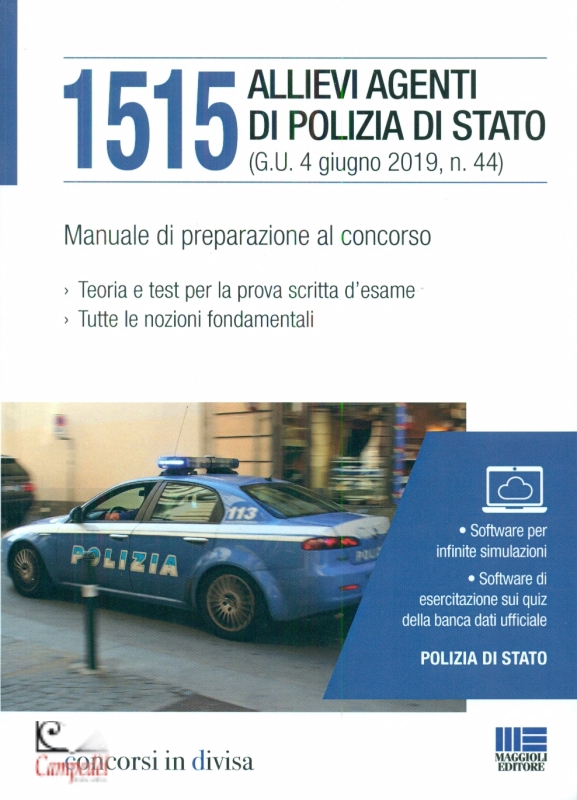 1515 allievi agenti di polizia di stato Autori Autori Vari Editore Maggioli Editore Collana Concorsi in Divisa Manuale di preparazione al concorso Il manuale si indirizza a quanti partecipano al concorso pubblico, pubblicato sulla Gazzetta Ufficiale n. 44 del 4 giugno 2019, per 1515 Allievi Agenti di Polizia di Stato, riservato ai volontari in ferma prefissata di un anno o quadriennale, ovvero in rafferma annuale. Il testo, in stretta aderenza con quanto previsto dal bando, propone tutte le nozioni essenziali per prepararsi alla prova scritta d’esame e permette di raggiungere la preparazione necessaria per rispondere: • al questionario con domande a risposta multipla su argomenti di cultura generale e sulle materie previste nei programmi della scuola dell’obbligo; • ai quesiti per verificare il livello di conoscenza della lingua straniera; • ai quesiti per attestare il livello di preparazione nell’uso delle apparecchiature e delle applicazioni informatiche. L’opera offre, infatti, una trattazione completa, chiara e aggiornata delle seguenti materie: Letteratura italiana, Grammatica italiana, Storia, Storia dell’arte, Geografia, Educazione civica, Matematica, Discipline scientifiche, Informatica. Per ciascuna materia, oltre a una sintesi dei principali argomenti d’esame, il testo propone anche una raccolta di quesiti per verificare il grado di preparazione raggiunto e allenarsi alla prova. Nel testo sono inoltre previste batterie di quesiti a risposta multipla in lingua inglese e francese: attraverso il commento alle risposte esatte si ripercorrono le principali regole delle due lingue. Per le sue caratteristiche, il volume costituisce quindi uno strumento mirato e indispensabile per acquisire o ripassare in poco tempo tutte le nozioni fondamentali per superare la prova scritta d’esame. Nella sezione online su https://www.maggiolieditore.it/approfondimenti, accessibile tramite codice riportato in fondo al volume, sarą inoltre possibile accedere al software per prepararsi alla prova scritta d’esame con i quiz del concorso precedente. Quando sarą pubblicata la banca dati ufficiale dei quesiti sarą disponibile anche un software per effettuare simulazioni direttamente su quei quiz. Libri consigliati Concorso 153 infermieri regione Lazio Concorso funzionari giudiziari 1800 quiz per i concorsi in polizia locale, municipale e provinciale Concorso 20 funzionari specialisti amministrativi (Cat. D) comune di Bari Acquista: Libreria Editrice Campedel professionisti al vostro servizio info@campedel.it | |