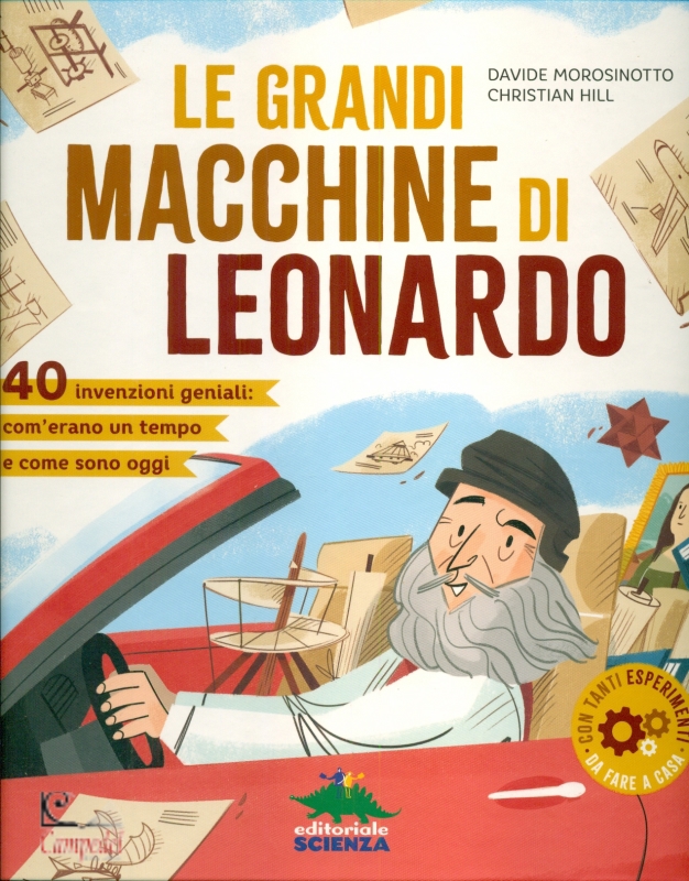 Le grandi macchine di Leonardo 40 invenzioni geniali: com'erano un tempo e come sono oggi di Davide Morosinotto e Christian Hill Illustratore: Marco Bonatti Collana: A tutta scienza Leonardo da Vinci raccontato ai bambini da Davide Morosinotto e Christian Hill. Un libro per capire come funzionano le macchine di Leonardo e scoprire non solo i progetti del grande inventore, ma anche la loro applicazione odierna. Il giovane ingegnere Leo, che viene da Vinci e si dice sia un pro-pro-pro nipote del geniale Leonardo, si ritrova coinvolto in un’animata discussione: un collega sostiene che il suo illustre avo sia un genio sopravvalutato e lui si ripromette di fargli cambiare idea. Inizia così una sfida a suon di invenzioni: sommergibili, aeroplani, automobili, carri armati, ma anche ventilatori, viti, chitarre, gru e calcolatrici… 40 macchine ideate da Leonardo da Vinci più di 500 anni fa, che ancora oggi sono attuali e utilissime! Il libro contiene inoltre tanti esperimenti che evidenziano i principi scientifici alle base delle invenzioni leonardesche e invita il lettore a cimentarsi nella costruzione di alcuni progetti. Leonardo da Vinci è, senza dubbio, una delle persone più studiate nella storia. Geniale e creativo, fu uno degli artisti più influenti di tutti i tempi e un inventore così rivoluzionario da anticipare di secoli il progresso dell’umanità. In questo libro per bambini, Davide Morosinotto e Christian Hill raccontano l’abilità di Leonardo come ingegnere , presentando le macchine e i congegni da lui ideati: per ciascuno di questi, il volume mostra il progetto com’era negli schizzi di Leonardo e la sua applicazione attuale. Ad accompagnare tutte le illustrazioni, didascalie per capire come funzionano le macchine e i meccanismi che le compongono. Due macchine di Leonardo: com’erano e come sono oggi Il progetto di Leonardo: la barca a pale Per millenni i marinai hanno avuto solo due possibilità per far muovere le loro barche: issare una vela e quindi affidarsi ai capricci del vento oppure andare a remi. Alla ricerca di un sistema di propulsione più efficiente, Leonardo inventa una terza possibilità: applica a una barca due ruote a pale. La sua idea rivoluzionerà la navigazione! Il progetto di Leonardo oggi: il battello a ruota Per secoli l’invenzione di Leonardo restò poco più di una curiosità. Poi fu inventato il motore a vapore, e il battello a ruota diventò la prima nave moderna della storia. Le ruote a pale vennero montate sui piroscafi oceanici e sui battelli che dovevano risalire i grandi fiumi, come il Mississippi in America. Ancora oggi, questo tipo di imbarcazione viene usato per navigare su fiumi e laghi, dove i fondali non sono molto profondi. Il progetto di Leonardo: la vite aerea È uno dei progetti più famosi del genio fiorentino: una vite che, girando vorticosamente, spinge l’aria verso il basso per consentire alla macchina di alzarsi in volo. Un’idea davvero intelligente, peccato che Leonardo abbia sbagliato le misure: la vite è troppo piccola rispetto alla navicella, e il peso e l’assenza di motore le impedirebbero di sollevarsi. Il progetto di Leonardo oggi: l’elicottero Il pronipote moderno della vite aerea è senza dubbio l’elicottero. Infatti anche qui abbiamo un’elica che gira e permette di spiccare il volo… A prima vista magari non sembra, ma gli elicotteri sono molto più difficili da costruire e far volare rispetto agli aeroplani, e costano parecchio di più! Libreria Campedel Professionisti al vostro servizio acquista | |
