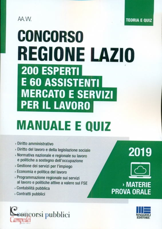 Concorso regione Lazio. 200 esperti e 60 assistenti mercato e servizi per il lavoro. Manuale e Quiz Editore Maggioli Editore Pubblicazione settembre 2019 (I Edizione) Collana concorsi pubblici -Diritto Amministrativo -Diritto del lavoro e della legislazione sociale -Normativa nazionale e regionale su lavoro e politiche a sostegno dell'occupazione -Gestione dei servizi per l'impiego -Economia e politica del lavoro -Programmazione regionale sui servizi al lavoro e politiche attive a valere sul FSE -Contabilità pubblica -Contratti pubblici Il presente volume costituisce un utilissimo strumento di preparazione al Concorso della Regione Lazio per 200 posti da Esperto (Cat. D) e 60 posti da Assistente (Cat. C) del Mercato e servizi per il lavoro presso i Centri per l’impiego e le politiche attive del lavoro, pubblicato sulla Gazzetta Ufficiale del 26 giugno 2019, n. 50. Il testo è un valido strumento per affrontare tutte le prove previste dal bando di concorso e presenta una sezione manualistica, seguita da alcune batterie di quiz, sulle seguenti materie: › Diritto amministrativo, in particolare la disciplina del pubblico impiego e il C.C.N.L. Funzioni Locali; › Diritto del lavoro e della legislazione sociale; › Normativa nazionale e regionale in materia di lavoro e politiche a sostegno dell’occupazione, con particolare riferimento al D.lgs. n. 150/2015 e al D.L. n. 4/2019, convertito in Legge n. 26 del 30 marzo 2019, anche con riferimento alla normativa nazionale e regionale sull’inserimento lavorativo delle persone con disabilità e dei soggetti svantaggiati e particolare riferimento ai servizi ai cittadini ed alle imprese, compreso il collocamento mirato forniti dai centri per l’impiego, come individuati dal decreto dal Ministero del lavoro e delle politiche sociali n. 4 dell’11.01.2018; › Economia e politica del lavoro; › Programmazione regionale in materia di servizi al lavoro e politiche attive a valere sul FSE; › Contabilità pubblica, con particolare riferimento all’ordinamento finanziario e contabile delle Regioni; › Contratti pubblici. Disponibili nella sezione online su https://www.maggiolieditore.it/ approfondimenti, raggiungibile tramite il codice riportato in fondo al volume le sezioni riguardanti le materie oggetto della prova orale: › Delitti contro la Pubblica amministrazione; › Normativa su trattamento e protezione dei dati personali; › Normativa in materia di prevenzione della corruzione e di trasparenza; › Lingua inglese; › Informatica. Grazie alle numerose batterie di quiz proposte, il volume garantisce al candidato la possibilità di verificare il livello di preparazione raggiunto e di familiarizzare con la tipologia di prova a quiz. Libri consigliati Concorso 1514 posti ministero del lavoro, INL e INAIL. Prova preselettiva Manuale e Quiz sulle materie comuni a tutti i profili Concorso Agenzia delle Dogane e dei Monopoli . Prova preselettiva Manuale e Quiz Concorso assistenti ed esperti del mercato del lavoro presso i centri regionali per l'impiego (Cat. C e D) Kit concorso 1514 posti ministero del lavoro, INL e INAIL. Prova preselettiva Manuale e Quiz Libreria Campedel Professionisti al vostro servizio Acquista | |