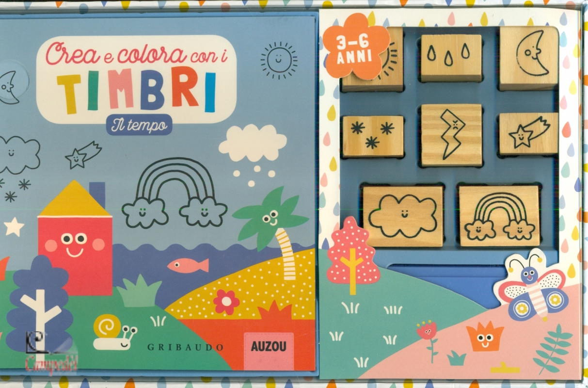 1 libro di 21 pagine, 8 stampini, 1 tampone Etą di lettura: da 5 anni