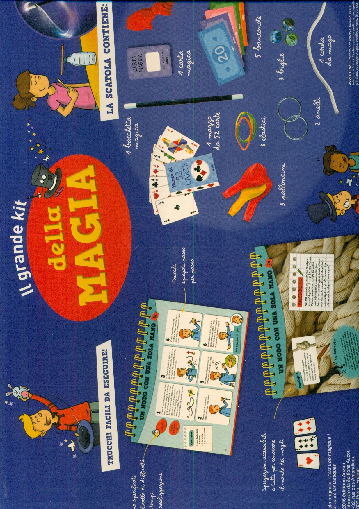 Il grande kit della magia. Con gadget pubblicato da Gribaudo Collana Giochi creativi Oltre 30 trucchi spiegati da un esperto prestigiatore. Trucchi facili da eseguire. Sono specificati il livello di difficoltà e i tempi di realizzazione. Trucchi spiegati passo per passo. Spiegazioni accessibili a tutti per conoscere il mondo dei maghi. La scatola contiene: 1 bacchetta magica, 1 mazzo da 52 carte, 3 palloncini, 3 elastici, 2 anelli, 3 biglie, 1 corda da mago, 1 dado, 5 banconote, 1 fazzoletto da mago, 1 carta magica. Età di lettura: da 5 anni. | |