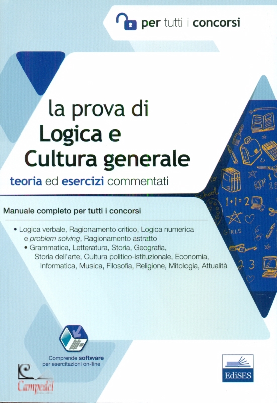 La prova di logica e cultura generale. Teoria ed esercizi commentati. Manuale completo per tutti i concorsi pubblicato da Editest Collana Per tutti i concorsi La prova di Logica e Cultura generale, presente nella gran parte delle prove di selezione presso enti pubblici e privati, è volta a misurare la capacità di ragionamento e valutare il grado di conoscenza delle nozioni culturali dei candidati. Il volume, organizzato in due parti, contiene tutte le conoscenze teoriche e una raccolta di quesiti risolti e commentati utili per superare la prova. La prima parte comprende una disamina delle più comuni tipologie di quiz di Logica (logica verbale, ragionamento critico, logica numerica e problem solving, ragionamento astratto) con un'ampia descrizione delle tecniche e dei metodi più efficaci per risolverli correttamente. La seconda parte è dedicata ai principali argomenti di Cultura generale (grammatica, letteratura, storia, geografia, storia dell'arte, cultura politico-istituzionale, economia, informatica) che più di frequente si incontrano nelle prove di selezione. Il volume è arricchito da un software di simulazione e da materiali di approfondimento (tra cui sezioni dedicate ad argomenti di musica, filosofia, religione, mitologia e attualità, disponibili come estensioni online) accessibili dalla propria area riservata. | |