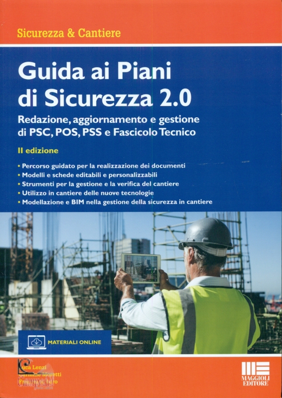 Guida ai Piani di Sicurezza 2.0 Redazione, aggiornamento e gestione di PSC, POS, PSS e Fascicolo Tecnico Autori Luca Lenzi, Carmine Moretti, Francesco Loro Editore Maggioli Editore Collana: Sicurezza & cantiere • Percorso guidato per la realizzazione dei documenti • Modelli e schede editabili e personalizzabili • Strumenti per la gestione e la verifica del cantiere • Utilizzo in cantiere delle nuove tecnologie • Modellazione e BIM nella gestione della sicurezza in cantiere MATERIALI ONLINE Associata alla guida una completa modulistica aggiornata editabile per la redazione di PSC, POS, Fascicoli tecnici dell’opera e PSS personalizzabili per le specifiche esigenze, oltre a importanti strumenti di lavoro editabili quali Gruppi Omogenei, Schede di Lavorazione, Schede Macchine, Moduli per la Gestione del Cantiere, foto e simboli. Questa nuova Guida ai Piani di Sicurezza 2.0, giunta alla seconda edizione, si rinnova e si aggiorna allo stato dell’arte tecnico e normativo per offrire un vero e proprio percorso guidato per la redazione del Piano di Sicurezza e Coordinamento (PSC), del Fascicolo Tecnico (FT), del Piano Operativo di Sicurezza (POS) e del Piano Sostitutivo di Sicurezza (PSS), accompagnando il lettore passo per passo nella redazione, nell’organizzazione e nella gestione della documentazione. Le schede delle lavorazioni e la modulistica, scaricabili dal cloud, sono editabili e personalizzabili secondo le specifiche esigenze e sono state aggiornate mantenendo l’impostazione grafica innovativa della precedente edizione, con l’aggiunta di alcune funzionalità per facilitare il lavoro. È stata mantenuta e arricchita anche la segnaletica relativa ai DPI necessari per il corretto svolgimento delle lavorazioni. In linea con le richieste esplicitate negli anni dagli organi di controllo, questa guida offre uno strumento operativo chiaro, comprensibile e preciso, ulteriormente migliorato e affinato dall’esperienza maturata dag li Autori nel corso di una pluriennale pratica professionale sui cantieri come responsabili e coordinatori della sicurezza. Questa nuova edizione approfondisce ed estende la trattazione con ulteriori schede macchine, gruppi omogenei e schede di lavorazione, come per esempio: • bonifica di ordigni bellici; • incidenti stradali e sicurezza dei luoghi; • scavi archeologici; • allestimento segnaletica stradale; • aggiornamento scheda bonifica amianto. Inoltre, i contenuti delle schede macchine, dei gruppi omogenei e delle schede di lavorazione già presenti nella precedente edizione sono stati integrati con i rischi da esposizione a Campi Elettromagnetici (CEM) e da Radiazioni Ottiche Artificiali (ROA). Rivestono particolare importanza, inoltre, le indicazioni riguardanti la gestione dei documenti durante le fasi del cantiere, specialmente per quanto concerne le modalità di aggiornamento. Sono presenti chiare istruzioni per esercitare correttamente il coordinamento e il controllo di cantiere, mediante verbali, moduli e aggiornamenti: non solo delle interferenze e delle lavorazioni, ma anche delle imprese e dei lavoratori autonomi, sia dal punto di vista dell’impresa affidataria e/o esecutrice che del coordinatore. Un’altra novità di questa guida è rappresentata dall’inserimento di una sezione dedicata alla modellazione e al BIM (Building Information Modeling) nella gestione della sicurezza in cantiere. Libri consigliati SCIAvvf antincendio e asseverazione VVF Riduzione del rischio sismico degli edifici storici in muratura Nuovo manuale di prevenzione incendi L’autotutela del professionista tecnico nei contratti d’appalto privati Libreria Campedel Professionisti al vostro servizio | |