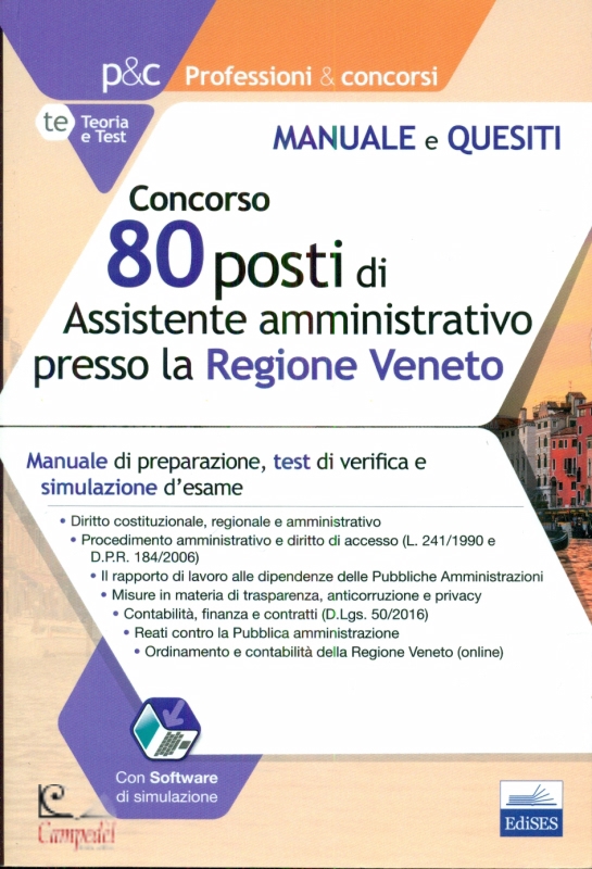 Concorso 80 posti di Assistente amministrativo presso la Regione Veneto Manuale di preparazione e test di verifica Pubblicato da: Edises Collana Professioni & concorsi Il volume sintetizza le materie professionali oggetto delle prove (eventuale preselettiva, prove scritte e prova orale) del concorso indetto dalla Regione Veneto per l’assunzione di 80 Assistenti amministrativi (bando pubblicato nel BUR n. 136 del 29 novembre 2019). Nel manuale sono trattati, in maniera sintetica ma completa, tutti gli argomenti previsti dal bando: il diritto regionale e amministrativo, le tematiche connesse alla disciplina del procedimento amministrativo e al diritto di accesso (L. 241/1990 e D.P.R. 184/2006), la disciplina del rapporto di lavoro alle dipendenze delle Pubbliche Amministrazioni, le misure in materia di trasparenza, anticorruzione e privacy, la contabilità e l’attività contrattuale (D.Lgs. 50/2016) degli enti pubblici, le disposizioni in tema di reati contro la Pubblica Amministrazione. Online è disponibile una raccolta normativa dei principali provvedimento concernenti l’ordinamento istituzionale e contabile della Regione Veneto. La trattazione è aggiornata alle ultime novità normative, tra le quali si ricordano la legge sulla concretezza della Pubblica Amministrazione (L. 56/2019), la legge di conversione del decreto sblocca cantieri (L. 55/2019, di conversione del D.L. 32/2019), la nuova legge anticorruzione (L. 3/2019) e altri provvedimenti di interesse per chi opera negli enti locali. Al termine di ogni materia sono predisposti Test a risposta multipla per la verifica delle conoscenze acquisite. Grazie al software online accessibile gratuitamente nell’area riservata, previa registrazione, sarà possibile effettuare ulteriori verifiche e simulare lo svolgimento della prova preselettiva. | |