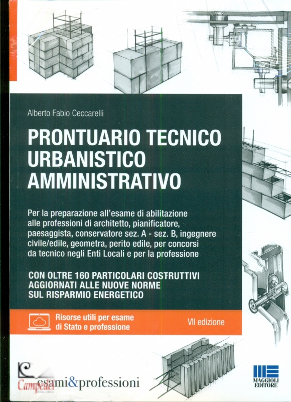 Guida pratica alla progettazione + Prontuario tecnico urbanistico amministrativo - Kit per la preparazione all’esame di abilitazione Autori Alberto Fabio Ceccarelli, Paolo Villatico Campbell Editore Maggioli Editore Collana Esami e Professioni 1) "Guida pratica alla progettazione" Con oltre 1440 tavole di progetto a colori 2) "Prontuario tecnico urbanistico amministrativo" Con oltre 160 particolari costruttivi aggiornati alle nuove norme sul risparmio energetico Volume 1: "Guida pratica alla progettazione per l’esame di abilitazione" Qualificato testo di riferimento per la progettazione architettonica, urbanistica e di recupero/restauro, la GUIDA PRATICA ALLA PROGETTAZIONE è, da oltre 19 anni, lo strumento indispensabile per prepararsi all’esame di Stato per architetti, pianificatori, paesaggisti, conservatori e per ingegneri civili/edili, laurea triennale e quinquennale. Questa settima edizione, totalmente rinnovata, è stata rivista nella parte teorico-concettuale, nei contenuti progettuali e nella pubblicazione di 335 nuove tavole di progetto. La Guida è articolata in due volumi: • il Manuale di progettazione affronta in chiave concettuale e normativa le principali tematiche urbanistiche, architettoniche e di recupero/restauro, legate al superamento della prova grafica dell’esame di Stato. In tal senso il volume risulta totalmente rinnovato rispetto alle edizioni precedenti, con un nuovo indice, nuovi schemi concettuali e progettuali, un rinnovato capitolo sull’efficienza energetica, unitamente ad un sostanziale aggiornamento normativo relativo all’edilizia, sulla base del nuovo regolamento unico nazionale, delle normative sul superamento delle barriere architettoniche e delle innovazioni relative alla materia antincendio. Ampio spazio è dedicato agli strumenti urbanistici, con una guida alla redazione dei corretti conteggi, oltre all’aggiornamento dei dati di standard minimi nazionali e regionali. Aggiornato anche il capitolo sulle tecniche grafiche tradizionali, con una nuova guida alla realizzazione di prospettive a mano libera; • il secondo volume raccoglie 335 nuove tavole di progetto a colori. Alcune sono il rifacimento di quanto ha permesso ai candidati di ottenere i migliori risultati all’esame; altre costituiscono invece le esercitazioni svolte durante i corsi organizzati a Milano dall’autore. In entrambi i casi, i progetti pubblicati offrono una ricca varietà di spunti ideativi. Ulteriore novità è un sito web dedicato, esamearchitetto.it collegato al volume, dove sono pubblicati 4 progetti (che sono valsi l’abilitazione con il massimo dei voti), relativi a un tema progettuale, un tema urbanistico tradizionale, un tema di recupero e un tema urbanistico con i principi di perequazione/compensazione, corredati dai commenti degli autori sulle strategie seguite in sede d’esame. Il sito web raccoglie inoltre le 1110 tavole che costituiscono le migliori elaborazioni pubblicate nelle precedenti sei edizioni, anch’esse utilizzabili come spunto ideativo grafico e concettuale. Assieme alle tavole, è presente anche la parte relativa alla differente organizzazione d’esame per architetti e ingegneri rispetto alle varie sedi, unitamente alle statistiche percentuali di abilitati, aggiornate al 2018, gentilmente forniti dalla “Fondazione CNI – Centro studi”. Per accedere ai materiali online è necessario collegarsi al sito web esame architetto.it e seguire le istruzioni indicate sul talloncino presente in fondo al volume delle Tavole di progetto. Il testo, coadiuvato dal PRONTUARIO TECNICO URBANISTICO AMMINISTRATIVO, rappresenta quindi la migliore e più aggiornata guida per la preparazione all’esame di Stato sez. A e sez. B, disciplinato dal D.P.R. 328/2001 e strutturato in una prova grafica, due prove scritte e un orale, modalità ormai valide sia per laureati quinquennali e/o specialistici che per i laureati triennali. Volume 2: "Prontuario tecnico urbanistico amministrativo" La settima edizione del Prontuario tecnico urbanistico amministrativo, pur conservando inalterate le caratteristiche di chiarezza ed esaustività necessarie a rispondere ai vari quesiti delle prove d’esame di Stato delle professioni tecniche, presenta numerose novità. Il volume tiene conto di quanto previsto dal nuovo Codice appalti (D.Lgs. 50/2016) e dal Testo Unico Edilizia, aggiornati entrambi ai vari correttivi di gennaio 2020, unitamente a vari adeguamenti relativi alla disciplina urbanistica, igienico-sanitaria, antincendio, risparmio energetico, acustica, ecc. Il capitolo sul Codice dei beni culturali e del paesaggio è stato rivisto, in funzione della disciplina relativa alle autorizzazioni paesaggistiche e degli specifici quesiti posti nella seconda prova scritta per gli architetti paesaggisti. Totalmente rinnovato è il capitolo relativo al predimensionamento strutturale, in funzione delle nuove Norme tecniche per le costruzioni 2018, introducendo anche maggiori specifiche sulle problematiche antisismiche e sulle relat ive strategie di intervento nel caso di edifici esistenti in muratura portante. Particolare cura è dedicata alle prove per architetti sez. B, oltre alla riproposizione di esemplificazioni di progetti di ristrutturazione e parti più propriamente legate agli elementi tecnico-descrittivi ed estimativi. Significative modifiche sono state apportate al capitolo sugli ordini professionali e ai relativi onorari professionali, alla luce del D.P.R. 137/2012, del D.M. 140/2012 e del D.M. 17 giugno 2016. Risulta arricchita anche la parte relativa alla tecnologia, con la nuova classificazione del sistema tecnologico, ai sensi della UNI 8290, unitamente a nuovi particolari costruttivi rispettosi delle norme di risparmio energetico, oltre allo specifico capitolo sull’edilizia sostenibile e la tecnologia a secco. Il testo vede anche la riproposizione di una sezione aggiornata sulla struttura organizzativa degli Enti Locali e sul diritto amministrativo, di pa