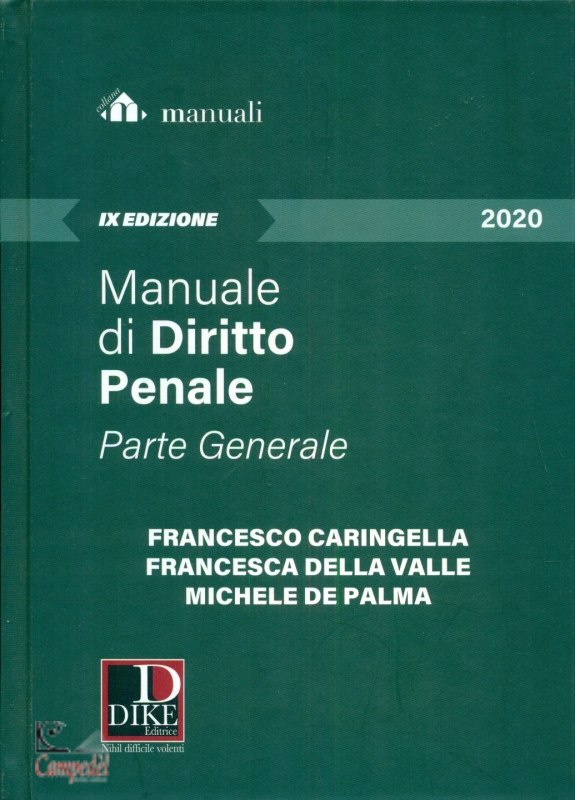 Manuale di diritto penale - Parte Generale 2020 di: Francesco Caringella, Francesca Della Valle, Michele De Palma Pubblicato da: DIKE Il manuale espone, in modo rigoroso e chiaro, le coordinate istituzionali relative ai singoli istituti illustra la giurisprudenza capace di chiarire le categorie precedentemente declinate agevola la comprensione degli istituti con schemi sinottici riepilogativi degli argomenti trattati esamina le pił recenti novitą legislative: dą conto dei pił recenti arresti giurisprudenziali delle Sezioni Unite, della Corte costituzionale e della giurisprudenza europea fino al dicembre 2019 Libreria Campedčl Professionisti al vostro servizio | |