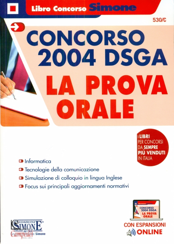 Concorso 2004 DSGA - La Prova orale • Informatica • Tecnologie della comunicazione • Simulazione di colloquio in lingua Inglese • Focus sui principali aggiornamenti normativi - con Espansioni ONLINE Pubblicato da: Simone Collana: Libro concorso Anno Edizione: 2020 Il Manuale è diretto a coloro che si accingono ad affrontare la fase conclusiva del concorso per Direttore dei servizi generali e amministrativi (DSGA), bandito nella G.U. del 28 dicembre 2018, n. 102. La prova orale, oltre a comprendere un colloquio sulle materie specialistiche e strettamente attinenti al ruolo e alle funzioni richiesti alla figura del DSGA, sarà diretta alla verifica della conoscenza degli strumenti informatici e delle tecnologie della comunicazione di più comune impiego, nonché alla verifica della conoscenza della lingua inglese, attraverso la lettura e la traduzione di un testo scelto dalla Commissione d’esame. Il testo, dunque, e stato cosi strutturato: — Parte I ( Strumenti informatici e tecnologie della comunicazione), in cui si analizzano gli strumenti e le tecnologie informatiche più utilizzati, e si affronta anche l’importante argomento dello sviluppo del “digitale” nella scuola; — Parte II (Lingua inglese), che propone elementi per affrontare il colloquio in lingua inglese, schede grammaticali di ripasso, esempi di conversazione e di fraseologia tra i più ricorrenti nonché di brani tradotti. Ad arricchire questa Parte contribuiscono numerose Espansioni online, tra cui evidenziamo gli Audio Practice per esercitarsi sulla pronuncia; — Parte III (Focus sui principali aggiornamenti normativi), in cui si da conto delle novità legislative più significative che hanno interessato il settore scolastico negli ultimi mesi. Questo Manuale, dunque, per le caratteristiche descritte, costituisce un indispensabile ausilio per la preparazione alla prova orale del concorso per DSGA. Libreria Campedèl Professionisti al vostro servizio | |