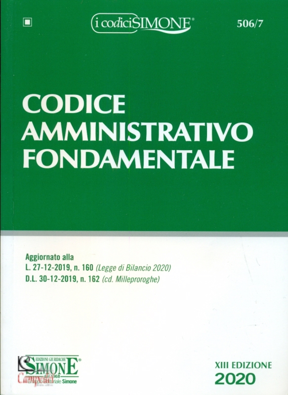 Codice Amministrativo Fondamentale Pubblicato da: Simone Collana: I codici Simone Questa nuova edizione (XIII) del Codice Amministrativo Fondamentale presenta una raccolta sistematica dei principi cardini del diritto amministrativo e si indirizza a quanti, studenti universitari, partecipanti a pubblici concorsi, operatori del diritto abbiano la necessità di avere un quadro generale ed aggiornato della più significativa normativa di settore. Il lavoro è suddiviso in 25 Titoli: Fonti del diritto amministrativo, Pubblica amministrazione, Riorganizzazione della P.A., Federalismo fiscale, Attività amministrativa, Accesso e Documentazione amministrativa, l’ormai imprescindibile Documentazione informatica, Amministrazione digitale, Semplificazione amministrativa, Trasparenza dell’azione amministrativa, Pubblico impiego, Privacy, Beni pubblici, Appalti pubblici, Edilizia, Urbanistica e Territorio, Impresa sociale e terzo settore, Reati contro la P.A., Giudice ordinario, Questioni di giurisdizione, Giudice amministrativo, Informatizzazione della giustizia, Responsabilità civile dei magistrati, Ricorsi amministrativi, Class action e Corte dei conti, per offrire una panoramica quanto più ampia possibile della materia. Il lavoro è aggiornato ai più recenti provvedimenti normativi tra i quali si segnalano il D.L. 30 dicembre 2019, n. 162 (c.d. Milleproroghe); la L. 27 dicembre 2019, n. 160 (Finanziaria 2020); la L. 19 dicembre 2019, n. 157, di conv. del D.L. 26 ottobre 2019, n. 124 (Disposizioni in materia fiscale), la L. 12 dicembre 2019, n. 141, di conv. del D.L. 14 ottobre 2019, n. 111 (Obblighi previsti sulla qualità dell’aria). Punto di forza del lavoro è costituito, come di consueto, da un dettagliato indice analitico-alfabetico che accanto ad un puntuale indice cronologico costituisce uno strumento indispensabile per l’immediato reperimento del dato normativo. Libreria Campedèl Professionisti al vostro servizio | |