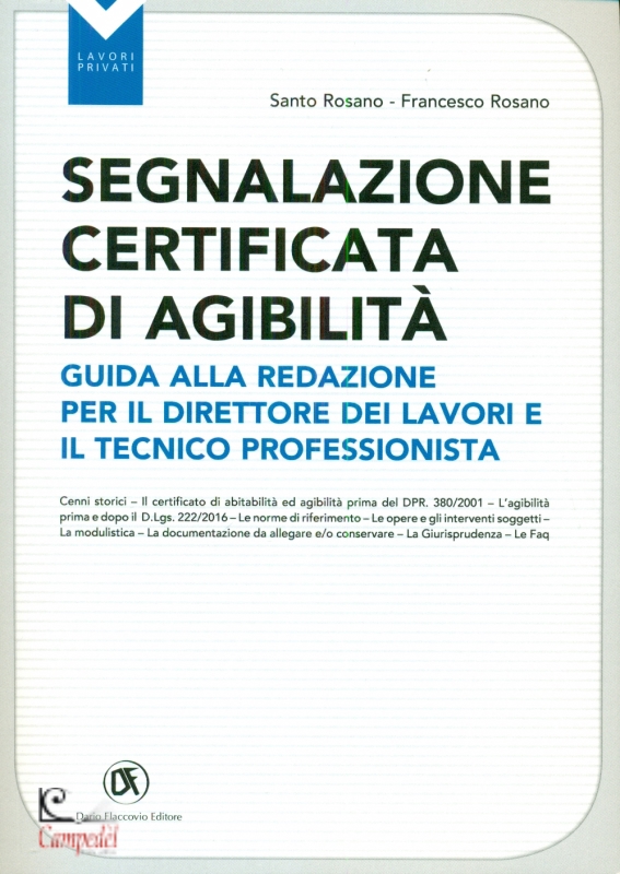 Segnalazione certificata di agibilità Guida alla redazione per il direttore dei lavori e il tecnico professionista Autori: Santo Rosano - Francesco Rosano Prima edizione: marzo 2020 Autori: Santo Rosano - Francesco Rosano La legge 7 agosto 2015, n. 124, più conosciuta come Riforma Madia, ha semplificato le procedure amministrative per la realizzazione degli interventi edilizi. Tali semplificazioni sono state introdotte con il D.Lgs. 30 giugno 2016, n. 126 – Attuazione della delega in materia di segnalazione certificata di inizio attività (SCIA), a norma dell’articolo 5 della legge 7 agosto 2015, n. 124 – SCIA 1 – e con il D.Lgs. 25 novembre 2016, n. 222 – Individuazione di procedimenti oggetto di autorizzazione, segnalazione certificata di inizio di attività, silenzio assenso e comunicazione e di definizione dei regimi amministrativi applicabili a determinate attività e procedimenti, ai sensi dell’articolo 5 della legge 7 agosto 2015, n. 124 – SCIA 2. Il presente volume costituisce un commento alla norma introdotta per illustrare il procedimento per la definizione dell’agibilità degli edifici e alla relativa modulistica, allo scopo di consegnare ai tecnici liberi professionisti una “guida” nella redazione della segnalazione certificata di agibilità. La nuova disciplina ha, infatti, previsto l’adozione di moduli unificati e standardizzati, licenziati nella seduta della Conferenza unificata Stato-Regioni del 4 maggio 2017, che le Regioni dovevano e hanno provveduto ad adeguare alle loro specifiche normative entro il 20 giugno 2017. Analogamente i Comuni dovevano e hanno provveduto, entro il 30 giugno 2017, a pubblicare sul proprio sito, fra gli altri, il modulo unificato per l’istanza di segnalazione certificata di agibilità. Il libro è altresì, per gli addetti ai lavori e non, un utile strumento per valutare la regolarità edilizia e la commerciabilità degli immobili. Libreria Campedèl Professionisti al vostro servizio | |