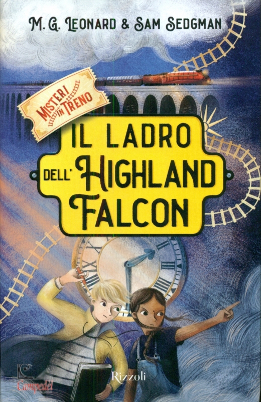 Il ladro dell'Highland Falcon. Misteri in treno. 1. M. G. Leonard - Sam Sedgman pubblicato da Rizzoli Traduttore Valerntina Daniele Illustratore Elisa Paganelli Collana Rizzoli narrativa Quando parte per un viaggio in treno con lo zio Nat, Hal non è affatto entusiasta. L'Highland Falcon, lussuoso treno storico a vapore che li porterà da Londra fino in Scozia, ospita adulti ricchi e famosi, ma nessuno che abbia la sua età. Basta poco, però, perché cambi idea. Fin da subito avvista una strana ragazzina che si nasconde sul treno e decide di mettersi sulle sue tracce. E solo il primo di tanti misteri. Presto la preziosa spilla della signora Pickle sparisce, e Lady Landsbury non trova più i suoi orecchini di perle. Hal non può far altro che trasformarsi in detective, lasciandosi trascinare in un'appassionante avventura che impegnerà il suo ingegno fino alla fine del viaggio. Tra principi e nobildonne, diamanti grandi come uova, truppe di cagnolini e amori segreti, un'avventura mozzafiato, dal ritmo serratissimo. Il primo volume della serie "Misteri in treno", omaggio ad Agatha Christie e al suo Assassinio sull'Orient Express. Con le illustrazioni di Elisa Paganelli. Età di lettura: da 10 anni. Libreria Campedèl | |