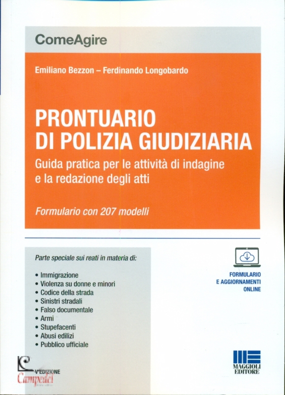 Prontuario di Polizia giudiziaria Guida pratica per le attivitą di indagine e la redazione degli atti Autori Emiliano Bezzon, Ferdinando Longobardo Editore Maggioli Editore Pubblicazione Agosto 2020 (V Edizione) Collana ComeAgire con Formulario con 207 modelli e Aggiornamenti online Parte speciale sui reati in materia di: • Immigrazione • Violenza su donne e minori • Codice della strada • Sinistri stradali • Falso documentale • Armi • Stupefacenti • Abusi edilizi • Pubblico ufficiale Il Prontuario offre a tutti gli operatori di polizia giudiziaria, siano essi ufficiali o agenti, uno strumento indispensabile per acquisire la necessaria padronanza e dimestichezza con le disposizioni del codice di procedura penale e per compiere tutti gli atti di indagine - d’iniziativa o delegati - nel modo pił corretto sotto il profilo sostanziale e formale. L’opera si pone l’obiettivo di guidare gli operatori nella quotidianitą del lavoro investigativo, facilitandoli in ogni attivitą di indagine e indirizzandoli verso un approccio pił corretto, tutto orientato al processo. Questa quinta edizione, oltre ad essere aggiornata alle pił recenti disposizioni legislative in materia, si propone con un formulario ulteriormente arricchito e con tutti i modelli riportati sia su carta sia online, al fine di conferire al Prontuario un taglio sempre pił operativo, fornendo tutti gli elementi di conoscenza utili alla conduzione dell’attivitą investigativa e alla corretta redazione degli atti di polizia giudiziaria. Libri consigliati La disciplina delle attivitą produttive dopo l’emergenza sanitaria nazionale Manuale operativo di pubblica sicurezza Prontuario di Polizia Ambientale Manuale di Polizia Amministrativa Libreria Campedčl | |