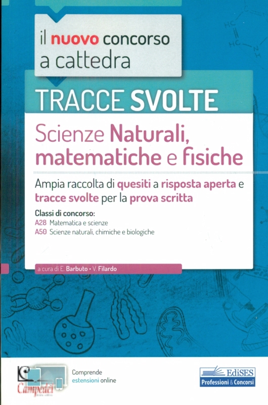 Tracce svolte di scienze naturali, matematiche e fisiche. ampia raccolta di quesiti a risposta aperta e tracce svolte per la prova scritta. con software di simulazione Scheda libro download Collana: concorso a cattedra Pubblicato da: Edises professioni & concorsi Software di simulazione Per la preparazione alla prova scritta del concorso a cattedra nelle classi: A28 - Matematica e scienze nella scuola secondaria di I grado; A50 - Scienze naturali, chimiche e biologiche. Il vo lume è costituito da un'ampia raccolta di domande a risposta aperta suddivise per area disciplinare. Ognuno dei quesiti qui riuniti è corredato da un percorso di svolgimento (che evidenzia i punti chiave da trattare) e da un'ipotesi di trattazione sintetica. Le aree trattate sono relative alle principali conoscenze disciplinari necessarie per l'insegnamento delle materie per le quali si intende conseguire l'abilitazione. Lo svolgimento di ciascun quesito favorisce un rapido riepilogo delle nozioni fondamentali e consente di fissare i concetti chiave. In Appendice, una raccolta di tracce assegnate in precedenti concorsi a cattedra. Il volume è completato da materiali didattici, approfondimenti e risorse di studio accessibili online. I servizi web sono disponibili per 12 mesi dall'attivazione del codice. Libreria Campedèl Belluno | |