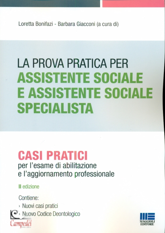 La prova pratica per Assistente sociale e Assistente sociale specialista Casi pratici per l’esame di abilitazione e l’aggiornamento professionale Autori Loretta Bonifazi, Barbara Giacconi (a cura di) Editore Maggioli Editore Pubblicazione Settembre 2020 (II Edizione) Collana Concorsi&Esami Contiene: › Nuovi casi pratici › Nuovo Codice Deontologico Il testo è un utilissimo strumento per quanti si preparano per la prova pratica dell’esame di abilita zione alla professione di assistente sociale e assistente sociale specialista e quanti invece, già professionisti, affrontano la prova pratica di concorsi o prove selettive pubbliche per tale profilo professionale. Il volume è strutturato in modo che vengano prima offerti gli inquadramenti teorici su metodi e tecniche della professione e, immediatamente dopo, le indicazioni operative relative a casi pratici. I casi pratici proposti sono sviluppati da assistenti sociali impegnati sul campo che, in considerazione dell’esperienza acquisita, delineano le metodologie, i riferimenti normativi e deontologici, gli strumenti utilizzati e l’organizzazione del servizio di appartenenza. L’opera è suddivisa in 3 aree di intervento: • pianificazione, programmazione e progettazione dei servizi sociali e sanitari, coi relativi casi pratici; • ricerca sociale, ambito di fondamentale importanza per lo sviluppo della professione; • lavoro con l’utenza, con casi pratici legati a minori, disabilità, dipendenze patologiche, ospedale e disagio adulto. Questa seconda edizione contiene nuovi casi pratici in ambito di progettazione, contrasto alla povertà e salute mentale. In coda al testo è inoltre riportato il nuovo Codice deontologico dell’assistente sociale, in vigore dal 1 giugno 2020. Libri consigliati L’assistente sociale e l’assistente sociale specialista L’assistente sociale Libreria Campedèl Belluno | |
