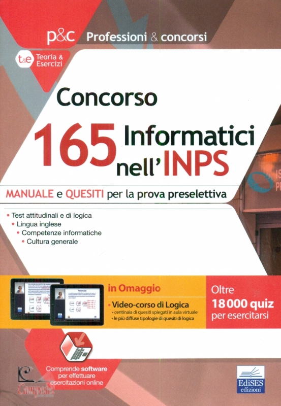 Concorso 165 Informatici INPS. Manuale e quesiti per la prova preselettiva. Con software di simulazione. Con video corso di logica Editore: Edises Collana:professioni & concorsi Data di Pubblicazione: ottobre 2020 Manuale di teoria e test per la preparazione alla prova preselettiva del concorso per 165 Informatici presso l'INPS (Gazzetta Ufficiale n. 78 del 6 ottobre 2020). Il testo affronta tutte le materie previste dal bando: - test attitudinali e di logica - lingua inglese - competenze informatiche - cultura generale Per ogni argomento sono disponibili quesiti a risposta multipla (online) per verificare le conoscenze acquisite. In omaggio con il libro, il software di simulazione per esercitarsi alla prova preselettiva e il video-corso di logica e una raccolta di quesiti ufficiali di precedenti concorsi INPS. libreria Campedèl Belluno | |