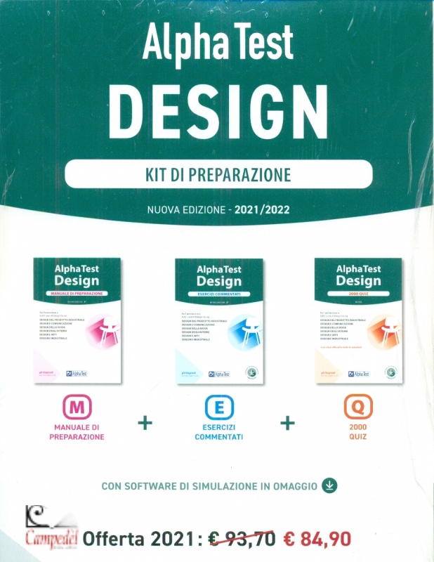 Alpha Test. Design. Kit di preparazione Stefano Bertocchi - Fausto Lanzoni - Carlo Tabacchi - Giuseppe Vottari pubblicato da Alpha Test Collana: Test universitari Design del prodotto industriale Design e comunicazione Design della Moda Design degli interni Design e arte Disegno industriale La nuova edizione 2021/2022 di questo kit è la soluzione più completa e aggiornata per la tua preparazione ai test di ammissione a Design e Disegno industriale. Ogni libro prevede la trattazione di tutti gli argomenti oggetto d'esame: storia dell'arte, dell'architettura e del design, disegno e rappresentazione, ragionamento logico e comprensione verbale, cultura generale, matematica e fisica). Il kit comprende: il manuale, con la teoria essenziale per studiare o ripassare ogni argomento richiesto al test; l'eserciziario con i commenti per mettersi alla prova e chiarire ogni dubbio; la raccolta di migliaia di domande ufficiali suddivise per materia con tutte le soluzioni. Libreria Campedèl Belluno | |