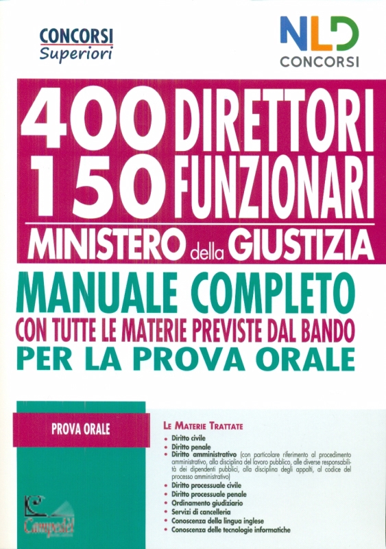 Concorso 400 Direttori e 150 Funzionari Ministero Giustizia 2020. Manuale per la prova orale Editore: Nld Concorsi Collana: Concorsi superiori Data di Pubblicazione: dicembre 2020 Le materie trattate Diritto civile Diritto penale Diritto Amministrativo ( con particolare riferimento al procedimento amministrativo, alla disciplina del lavoro pubblico, alle diverse responsabilità dei dipendenti pubblici, alla disciplina degli appalti, al codice del processo amministrati vo) Diritto processuale civile Diritto processuale penale Ordinamento giudiziario Servizi di cancelleria Conoscenza della lingua inglese Conoscenza delle tecnologie informatiche Libreria Campedèl Belluno | |