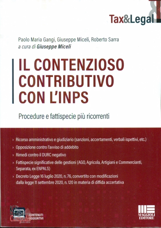 Il contenzioso contributivo con l’INPS Procedure e fattispecie più ricorrenti Autori Paolo Maria Gangi, Giuseppe Miceli, Roberto Sarra Editore Maggioli Editore Collana Tax & Legal › Ricorso amministrativo e giudiziario (sanzioni, accertamenti, verbali ispettivi, etc.) › Opposizione contro l’avviso di addebito › Rimedi contro il DURC negativo › Fattispecie significative delle gestioni (AGO, Agricola, Artigiani e Commercianti, Separata, ex ENPALS) › Decreto Legge 16 luglio 2020, n. 76, convertito con modificazioni dalla legge 11 settembre 2020, n. 120 in materia di diffida accertativa Questo volume, con un taglio giuridicamente rigoroso ma al tempo stesso pratico (attraverso la proposta di modelli di ricorsi), si presenta come un valido strumento per i professionisti (consulenti del lavoro, avvocati, commercialisti) che assistono le società o i lavoratori autonomi si in una fase propedeutica sia nel predisporre e implementare una valida strategia difensiva (preventiva, in sede amministrativa o giudiziaria) nei confronti dell’INPS. La prima parte dell’opera guida il professionista all’interno dell’inquadramento della materia a livello normativo, nella suddivisione tra le varie gestioni (lavoro a tempo determinato, apprendistato, lavoro intermittente, lavoro marittimo e ex IPSEMA, giornalistico, di appalto, le prestazioni occasionali e il lavoro autonomo) e nell’analisi di vari istituti come le ispezioni, l’accesso agli atti e g li strumenti alternativi al contenzioso. Vengono affrontate le sanzioni che l’INPS può irrogare, il sistema di riscossione e le possibili tutele. Infine nella parte generale vengono illustrati i meccanismi di formazione del DURC, le differenze e gli strumenti di tutela sia contro il DURC esterno, che contro quello interno fino ad arrivare al DURC negativo e la perdita delle agevolazioni contributive. La parte speciale esamina le fattispecie significative delle gestioni più rilevanti dell’INPS: AGO , Gestione Agricola, Gestione Artigiani e Commercianti (esaminando fattispecie come i familiari coadiutori, la doppia iscrizione dell’amministratore di SRL, i soci lavoratori, la cancellazione del liquidatore di società, l’artigiano di fatto, i gestori di case vacanza e b&b). Vengono approfondite le questioni di maggior rilevanza della Gestione Separata: gli iscritti alle professioni ordinistiche, la decorrenza della prescrizione, il limite reddituale di euro 5.000, i pensionati, gli sportivi non iscritti alle Gestioni ex-ENPALS. L’ultimo capitolo, infine, esamina le Gestioni ex ENPALS, fornendo un inquadramento di queste particolari gestioni e, poi, specificando le questioni relative agli artisti dello spettacolo, alla cessione del diritto all’immagine e all’obbligo previdenziale degli autori delle opere letterarie o di altro genere. Il volume è arricchito da un utile corredo di materiale tecnico-operativo disponibile online. Libri consigliati Casi e questioni di diritto processuale tributario Come si scrive un ricorso tributario Come difendersi dall’ipoteca e dalla riscossione esattoriale Come difendersi dalle cartelle esattoriali Libreria Campedèl Belluno | |