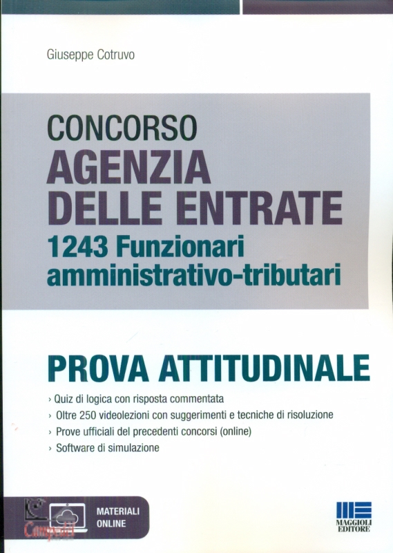 Concorso Agenzia delle entrate 1243 Funzionari amministrativo-tributari Prova attitudinale Autori Giuseppe Cotruvo Editore Maggioli Editore Pubblicazione Febbraio 2021 (I Edizione) Collana Concorsi&Esami › Quiz di logica con risposta commentata › Oltre 250 videolezioni con suggerimenti e tecniche di risoluzione › Prove ufficiali del precedenti concorsi (online) › Software di simulazione Il volume è un ottimo strumento di studio per la preparazione alla prova attitudinale del Concorso Agenzia delle Entrate, per il reclutamento di 1243 Funzionari amministrativo-tributari: un libro cartaceo con espansioni online consistenti in videolezioni a supporto della parte cartacea. Il testo offre un’ampia panoramica delle tipologie di quiz di logica assegnate negli ultimi anni (serie numeriche, ragionamento astratto e capacità visiva, logica figurale, logica matematica, ragionamento critico numerico, problem solving, logica deduttiva, logica verbale, comprensione verbale, serie verbali, analogie verbali, ragionamento verbale, frasi da completare, grammatica, ragionamento critico verbale). Accanto ad ogni quiz è riportato il riferimento alla videolezione (in tutto sono oltre 250) in cui sono spiegati, schematizzati e illustrati i passaggi e le tecniche da adottare per arrivare alla risoluzione. I quiz sono suddivisi in 16 simulazioni, permettendo al al candidato di esercitarsi nella gestione del tempo e verificare il proprio livello di preparazione. Dopo ogni simulazione sono fornite le spiegazioni di tutti i quiz. Un libro e un videocorso fusi in un unico prodotto editoriale, che ha avuto ottimi riscontri positivi per i precedenti concorsi di Agenzia delle Entrate, Agenzia delle Dogane e altri enti pubblici, per offrire al candidato uno strumento completo che consenta di superare la prova attitudinale. Nella sezione online, raggiungibile seguendo le istruzioni riportate in fondo al libro, sono disponibili: - videolezioni di logica; - software di simulazione per nuove esercitazioni; - selezione di prove ufficiali dei concorsi precedenti indetti dall’Agenzia delle Entrate. Libri consigliati Concorso agenzia delle entrate. 510 Funzionari Amministrativo-Tributari. Prova attitudinale Concorso agenzia delle entrate 150 dirigenti manuale Concorso agenzia delle entrate 150 dirigenti quesiti a risposta multipla Concorso Agenzia delle Entrate 150 Dirigenti Kit completo Libreria Campedèl Belluno | |