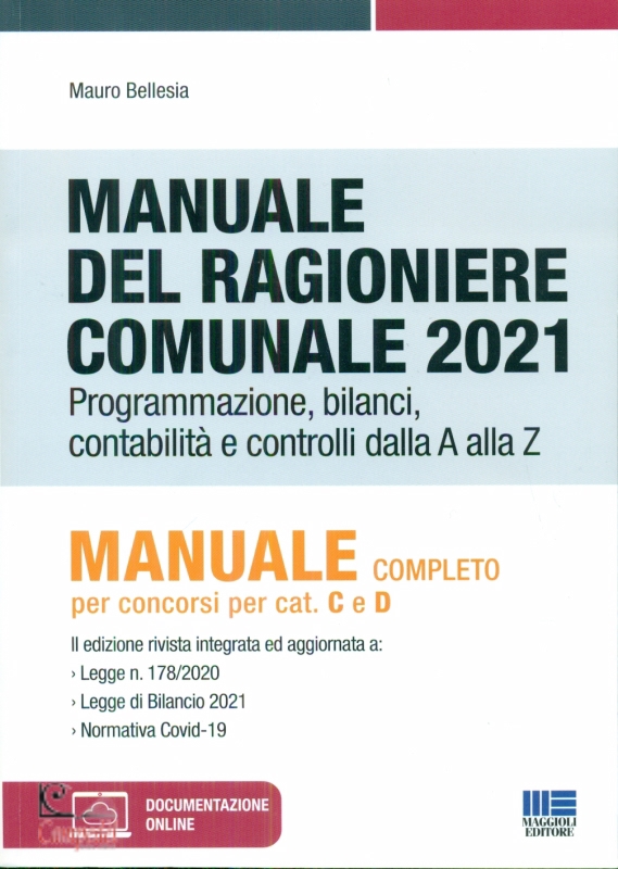 Manuale del Ragioniere comunale 2021 Programmazione, bilanci, contabilità e controlli dalla A alla Z Autori Mauro Bellesia Editore Maggioli Editore Pubblicazione Aprile 2021 (II Edizione) Collana Concorsi&Esami Manuale completo per concorsi per Cat. C e D II edizione rivista integrata ed aggiornata a: › Legge n. 178/2020 › Legge di Bilancio 2021 › Normativa Covid-19 Tramite il codice alfanumerico allegato al volume, sarà possibile accede re alla documentazione online disponibile in formato modificabile: › schemi di delibera: di approvazione del DUP, del PEG, del bilancio, del rendiconto, dei prelievi dai fondi di riserva, di salvaguardia degli equilibri, di ricognizione delle società partecipate, › schema di programma triennale lavori pubblici, di programma biennale acquisizione forniture e servizi, › schema di convenzione di tesoreria, del regolamento di contabilità, degli indicatori, › file excel: per il calcolo dei li miti della spesa, per il calcolo del consolidamento, › check list, › la normativa di riferimento. Il presente manuale, di 1272 pagine, tratta in modo completo ed esaustivo la disciplina dell’ordinamento finanziario e contabile degli enti locali dal punto di vista di chi lo applica quotidianamente, il Responsabile del servizio finanziario. Norme, regole e adempimenti sono illustrati, sintetizzati e commentati in stretta correlazione alle funzioni e alle responsabilità del “Ragioniere”, privilegiando un approccio operativo, ma senza trascurare aspetti metodologici, suggerimenti o approfondimenti finalizzati ad una migliore comprensione del contesto, dell’evoluzione e delle criticità del quadro di riferimento attuale. Per poter dirigere oggi la Ragioneria di un Ente, occorrono non solo professionalità adeguate e aggiornamento continuo, ma anche capacità interdisciplinari non comuni per intuire e decifrare in anticipo gli effetti delle norme e degli atti amministrativi, intercettando quelli importanti, per i quali vale la pena dedicare tempo e maggior attenzione. Il presente manuale ha lo scopo di guidare l’azione di chi riveste o intende ricoprire il difficile ruolo di Ragioniere comunale. Il manuale è stato aggiornato alla L. n. 178/2020, Legge di Bilancio 2021, norme Covid-19, Tesoreria, PagoPA, ecc. Al fine di semplificare la lettura, nel testo è inserito questo indicatore grafico che evidenzia i punti critici e rappresenta una guida trasversale di lettura con collegamenti, riferimenti normativi, riflessioni e consigli. Alla fine dell’opera sono resi disponibili due strumenti di grande utilità: › la mappa dei principali adempimenti e dei controlli con i relativi riferimenti normativi, › il glossario e indice analitico degli argomenti per facilitarne le ricerca per argomento all’interno del testo. Libri consigliati Concorso Comune di Roma 250 Istruttori amministrativi (CUIA/RM) Concorso 60 Istruttori amministrativi (Cat. C) Comune di Padova - Kit completo Concorso Comune di Roma 100 Funzionari amministrativi (FAMD/RM) - Kit completo Concorso Comune di Roma 500 Istruttori di Polizia locale (CUIP/RM) - Kit completo Libreria Campedèl Belluno | |
