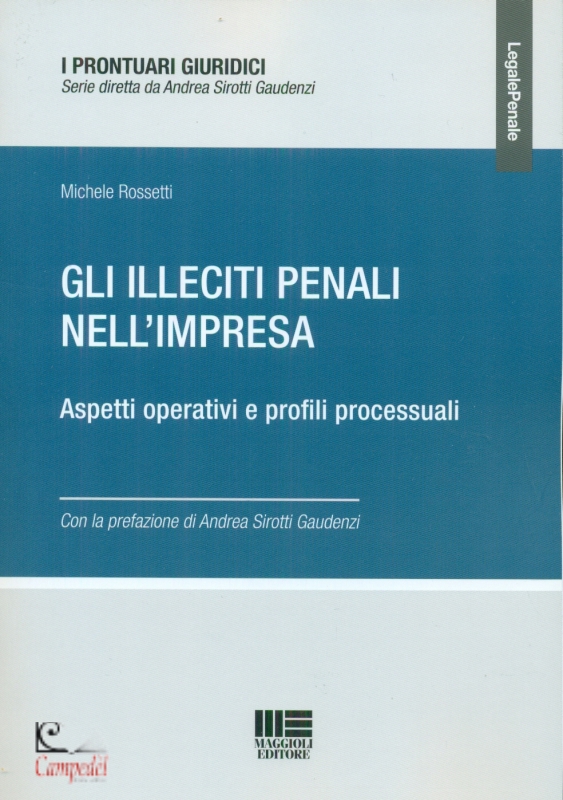 Gli illeciti penali nell’impresa Aspetti operativi e profili processuali Autori Michele Rossetti Editore Maggioli Editore Pubblicazione Maggio 2021 (I Edizione) Collana I Prontuari Giuridici Con la prefazione di Andrea Sirotti Gaudenzi Il volume include: Un approfondimento giurisprudenziale al termine di ogni singolo capitolo ll volume si propone come un testo diretto a dare soluzioni pratiche ai casi di responsabilità dell’impresa ai sensi del D. lgs. n. 231/2001, unendo l’approfondimento dei temi relativi alle materie di riferimento (diritto commerciale e fallimentare, diritto tributario, diritto dei mercati finanziari e diritto ambientale) con l’analisi della disciplina penalistica al fine di individuare le migliori soluzioni operative. Si è scelto di fornire una panoramica ragionata dei reati che interessano la vita dell’impresa, raggruppandoli per interessi tutelati, e fornendo un supporto sistematico e giurisprudenziale per l’anali si dei singoli reati. L’esposizione consente un’immediata consultazione al fine di individuare le opportune azioni da seguire per il corretto esercizio dell’attività di impresa. Libri consigliati La disciplina dei reati in materia di stupefacenti La prova del DNA: istruzioni per il giurista Reati contro la Pubblica Amministrazione Sequestri e confische Libreria Campedèl Belluno | |