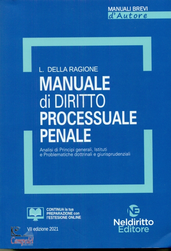 Manuale Di Diritto Processuale Penale 2021 Pubblicato da: Nel Diritto Editore Collana Manuali brevi d’autore Aggiornato a: • D. L. 1 aprile 2021, n.44 (Emergenza Covid 19) • D.M. Decreto 13 gennaio 2021 (Deposito di atti, documenti e istanze nella vigenza dell'emergenza epidemiologica da COVID-19) • L. 18 dicembre 2020, n. 176 (Ulteriori misure urgenti in materia di tutela della salute, sostegno ai lavoratori e alle imprese, giustizia e sicurezza, connesse all’emergenza epidemiologica da COVID-19) • L. 28 febbraio 2020, n. 7 (Riforma intercettazioni) • Ultimissima giurisprudenza 2020-2021 Libreria Campedèl Belluno | |