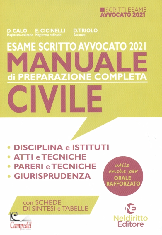 Esame scritto avvocato 2021. Manuale di preparazione completa civile. Nuova ediz. Editore: Neldiritto Editore Data di Pubblicazione: agosto 2021 Il Manuale č uno strumento innovativo volto ad assicurare una preparazione "integrata" all'esame e alla Professione. Per ciascuna Parte del programma, dopo aver ripercorso in modo sintetico ma esaustivo le nozioni fondamentali e la disciplina di riferimento, si fa rinvio a box di approfondimento tematici, recanti la trattazione delle questioni interpretative e problematiche al centro del dibattito (anche giurisprudenziale) piů recente e significativo. Nella trattazione di ciascuna questione č stato seguito un approccio standardizzato: - la questione e le ragioni per le quali si č posto il problema interpretativo; - le tesi sul tappeto; - la soluzione emersa in giurisprudenza e prevalsa nelle Sezioni Unite (laddove intervenute). Per alcune delle questioni piů importanti sono elaborate tracce di pareri e di atti, rinviando ad una parte successiva del volume per lo svolgimento. Utile anche per l'orale rafforzato. Libreria Campedčl Belluno | |