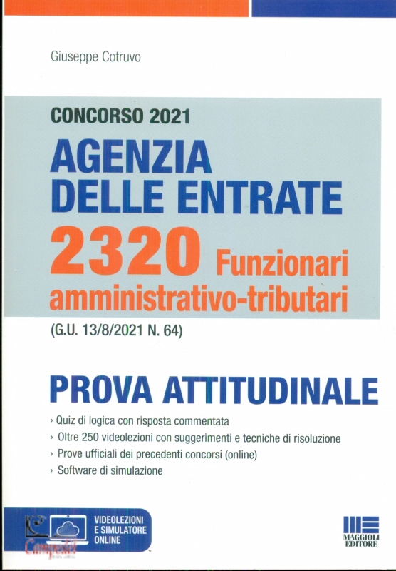 Concorso 2320 Funzionari amministrativo-tributari Agenzia delle Entrate 2021 - Prova attitudinale Autori Giuseppe Cotruvo Data pubblicazione: Agosto 2021 Collana Concorsi&Esami Editore Maggioli Editore Il volume è un ottimo strumento di studio per la preparazione alla prova attitudinale del Concorso Agenzia delle Entrate, per il reclutamento di 2320 Funzionari amministrativo-tributari, pubblicato sula Gazzetta Ufficiale del 13 agosto 2021, n. 64. Il testo offre u n’ampia panoramica delle tipologie di quiz di logica assegnate negli ultimi anni (serie numeriche, ragionamento astratto e capacità visiva, logica figurale, logica matematica, ragionamento critico numerico, problem solving, logica deduttiva, logica verbale, comprensione verbale, serie verbali, analogie verbali, ragionamento verbale, frasi da completare, grammatica, ragionamento critico verbale). Accanto ad ogni quiz è riportato il riferimento alla videolezione (in tutto sono oltre 250) in cui sono spiegati, schematizzati e illustrati i passaggi e le tecniche da adottare per arrivare alla risoluzione. I quiz sono suddivisi in 16 simulazioni, permettendo al candidato di esercitarsi nella gestione del tempo e verificare il proprio livello di preparazione. Dopo ogni simulazione sono fornite le spiegazioni di tutti i quiz. Un libro e un videocorso fusi in un unico prodotto editoriale, che ha avuto ottimi riscontri positivi per i precedenti concorsi di Agenzia delle Entrate, Agenzia delle Dogane e altri enti pubblici, per offrire al candidato uno strumento completo che consenta di superare la prova attitudinale. Nella sezione online, raggiungibile seguendo le istruzioni riportate in fondo al libro, sono disponibili: - videolezioni di logica con tecniche e suggerimenti per la soluzione dei quiz; - software di simulazione per nuove esercitazioni; - selezione di prove ufficiali dei concorsi precedenti indetti dalla agenzia delle entrate. Libreria Campedèl Belluno | |