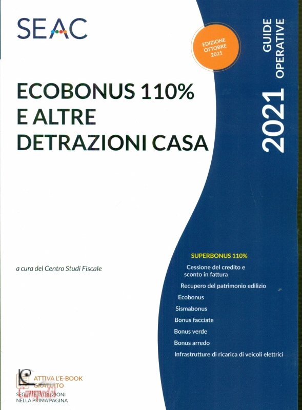 Ecobonus 110% e altre detrazioni casa A cura di: Centro Studi Fiscali Seac Editore:Seac Collana: Guide operative Data di Pubblicazione:2021 SUPERBONUS 110% Cessione del credito e sconto in fattura Recupero del patrimonio edilizio Ecobonus Sismabonus Bonus facciate Bonus verde Bonus arredo Infrastrutture di ricarica di veicoli elettrici Considerate le numerose disposizioni legislative ed i documenti di prassi intervenuti sulla disciplina delle detrazioni edilizie nei mesi scorsi, si è scelto di proporre una nuova edizione di settembre 2021 del testo “Ecobonus 110% e altre detrazioni casa”. Come usuale, è dettagliatamente illustrata la disciplina delle detrazioni spettanti per: interventi di recupero del patrimonio edilizio; interventi di riqualificazione energetica degli edifici (cd. ecobonus); interventi di adozione di misure antisismiche e di riduzione del rischio sismico (cd. “sisma bonus”); interventi di efficientamento energetico e “antisismici”, con maxidetrazione del 110% (cd. “superbonus”); acquisto di mobili e grandi elettrodomestici per l’arredo degli immobili ristrutturati (cd. “bonus arredo”); interventi di recupero o restauro della facciata esterna degli edifici (cd. “bonus facciate”); interventi di sistemazione a verde di aree pertinenziali (cd. “bonus verde”). Non manca, ovviamente, un’apposita sezione dedicata alle modalità alternative di fruizione della detrazione, ovvero la cd. “cessione del credito” nonché lo “sconto in fattura”. Nell’ambito della trattazione particolare evidenza è data alle numerose novità normative e chiarimenti di prassi intervenuti nel corso del 2021, che hanno inciso soprattutto sulla disciplina del superbonus. In particolare, si segnala: la previsione di termini più ampi per usufruire della detrazione per specifici soggetti; la possibilità di eseguire interventi trainati di eliminazione di barriere architettoniche anche con lavori trainanti di sismabonus; le nuove modalità di calcolo del limite di spesa agevolabile per ONLUS, ODV e APS; lo snellimento delle procedure amministrative richieste per realizzare gli interventi agevolabili, con l’introduzione del nuovo modello “CILA – Superbonus” in utilizzo dal 5 agosto 2021. Si ricorda, infine, che sono stati ampliati i termini entro cui le imprese edili devono cedere le unità immobiliari affinché gli acquirenti possano fruire del sismabonus acquisti e i termini entro cui va stabilita la residenza ai fini dei benefici “prima casa”, se l’immobile acquistato è stato oggetto di interventi “trainanti” di risparmio energetico (superbonus) Libreria Campedèl Belluno | |