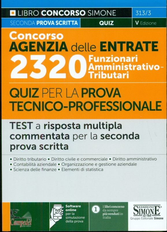 Concorso Agenzia delle Entrate 2320 Funzionari Amministrativo-Tributari – Quiz per la prova tecnico-professionale – Pubblicato da: Simone Collana: Libro concorso Test a risposta multipla commentata per la seconda prova scritta – Diritto tributario – Diritto civile e commerciale – Diritto amministrativo – Contabilità aziendale – Organizzazione e gestione aziendale – Scienze delle finanze – Elementi di statistica – Software online per la simulazione della prova Questo libro Concorso Agenzia delle Entrate – 2320 Funzionari Amministrativo-Tributari – La prova tecnico-professionale propone quiz commentati su tutte le materie oggetto della seconda prova oggettiva tecnico-professionale per 2170 funzionari esperti fiscali (RTRIB2170). Il manuale, in particolare, contiene test a risposta multipla, a tre e a quattro alternative, sulle seguenti materie previste dal bando: – diritto tributario; – civile e commerciale; – diritto amministrativo; – contabilità aziendale; – organizzazione e gestione aziendale; – scienza delle finanze; – elementi di statistica. In Appendice sono riportate quattro batterie di quesiti, ampiamente commentati, assegnanti dall’Agenzia delle Entrate nei precedenti concorsi per questo profilo professionale. Il software, poi, consentirà di esercitarsi e, al contempo, valutare il grado di preparazione raggiunto. Il testo risulta, inoltre, utile anche per i profili: 50 funzionari esperti fiscalità internazionale (INTER50), 70 esperti in attività legale (LEG70), 20 funzionari esperti di controllo di gestione (CG20). Per completare la preparazione si consiglia il manuale Concorso Agenzia delle Entrate 2320 Funzionari Amministrativo-Tributari – La prova tecnico-professionale (cod. 313/2). Libreria Campedèl Belluno | |