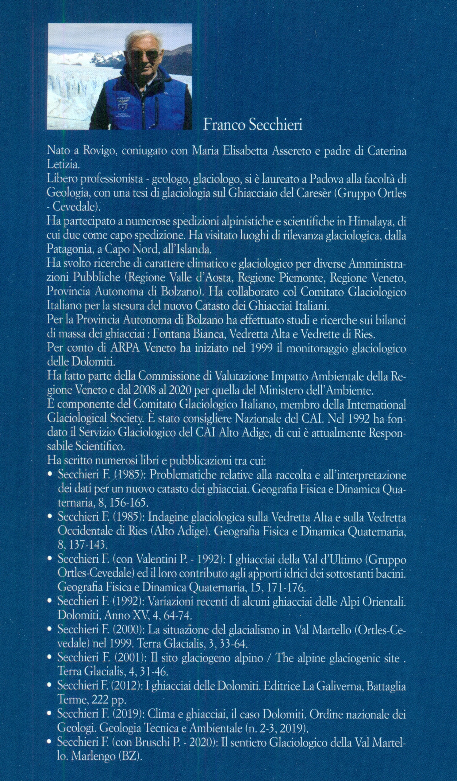 Clima e ghiacciai. Il caso Dolomiti Di Franco Secchieri Pubblicato da: Gilberto padovan Editore Pubblicazione scritta dal glaciologo Franco Secchieri: un’analisi meticolosa, documentata da un suggestivo apparato iconografico. Le variazioni del clima sono divenute un argomento di estremo interesse, scientifico e mediatico, per i cambiamenti che, non solo la Natura, ma anche l’intera società dovrà affrontare. In tale contesto i ghiacciai rappresentano uno dei più importanti aspetti delle modifiche dell’ambiente montano. In questo ambito sono coinvolte le Dolomiti, patrimonio dell’Unesco, così come i loro ghiacciai. Per documentare quello che sta succedendo alle nostre montagne, l’autore ha raccolto le più belle fotografie dei ghiacciai e glacionevati delle Dolomiti (oltre 80 !) a partire dal 1980, frutto di un lavoro di studio e ricerca svolto anche in collaborazione con la Regione Veneto. Quaranta anni di storia narrati attraverso il confronto di immagini, prevalentemente aeree, eseguite durante periodici ed annuali voli di ricognizione realizzati fino ai giorni nostri. Si tratta di una testimonianza unica ed irripetibile di paesaggi d’alta quota che stanno ormai scomparendo, paesaggi consegnati alla memoria dei giovani e futuri alpinisti o di semplici amanti della montagna. Sono ritratte tutte le masse gelate presenti nei vari i gruppi dolomitici: dalla Marmolada al Civetta, dalle Pale di San Martino al Cristallo, dalle Tofane al Sorapis e all’Antelao. Il titolo dell’edizione è : “Cli ma e Ghiacciai, il caso Dolomiti: gli ultimi 40 anni di storia dei ghiacciai raccontata in immagini” e si compone di 256 pagine e 315 fotografie, suddivise in due sezioni: la prima parte riporta notizie generali di glaciologia e la seconda comprende le immagini realizzate, tutte commentate, suddivise in gruppi montuosi. Libreria Campedèl Belluno | |