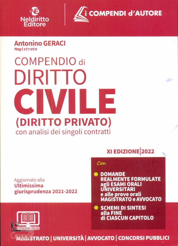 | La Collana "I compendi d'autore" si indirizza agli studenti universitari, ai candidati a concorsi pubblici e in generale a tutti coloro che si apprestano ad affrontare una prova orale In questa edizione si è proceduto ad un rinnovamento radicale dei volumi al fine di soddisfare al meglio le esigenze di chi ha poco tempo a disposizione per preparare la prova e incontra difficoltà per l'elevato numero di nozioni (anche di materie diverse tra loro) da memorizzare "I Compendi d'autore" sono gli strumenti giusti per superare queste due difficoltà grazie a: chiarezza e semplicità nell'esposizione delle nozioni e dei principi fondamentali; sinteticità ma al tempo stesso completezza nei contenuti In particolare, i volumi si connotano per: articolazione chiara e immediata degli argomenti in paragrafi e sottoparagrafi interni; esposizione schematica "per punti" delle principali tesi sulle questioni più problematiche; evidenziazione, tramite l'utilizzo di grassetti e corsivi, dei concetti-chiave di ogni singolo istituto; attenta selezione delle più importanti e recenti decisioni sulla giurisprudenza, segnalate in appositi box contenenti "La giurisprudenza più significativa"; segnalazione delle principali domande d'esame alla fine di ogni capitolo, utili per un rapido riepilogo delle nozioni apprese e per "testare" il livello di preparazione raggiunto; dettagliato indice analitico-alfabetico, per agevolare la ricerca degli istituti Si tratta di strumenti appositamente pensati per aiutare chi non può fare ricorso a trattazioni troppo lunghe e necessita di un'opera, che, in un limitato numero di pagine, fornisca in modo chiaro e completo tutto ciò che non è possibile non sapere per superare la prova! |