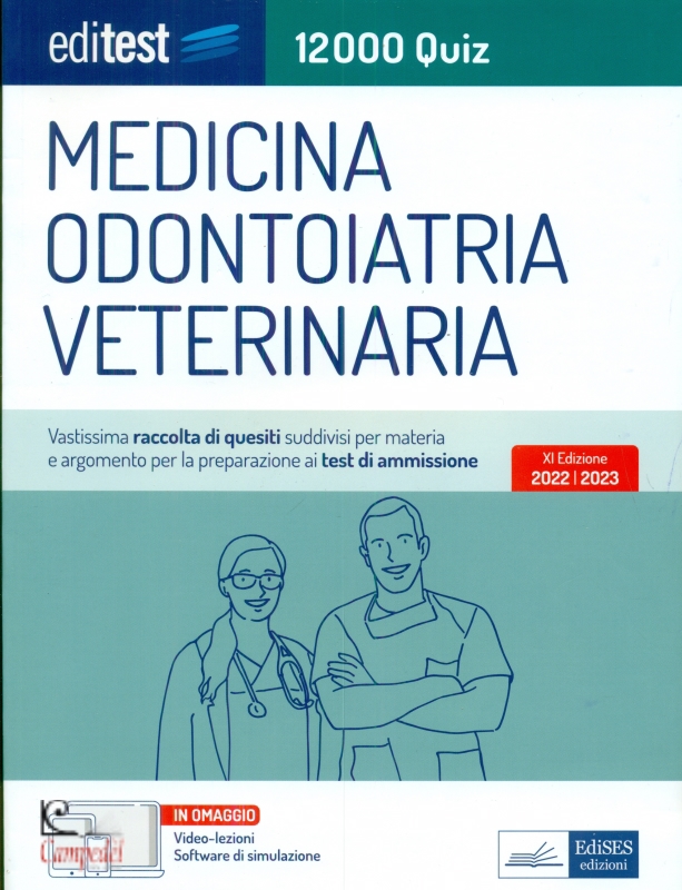 Test ammissione Medicina, Odontoiatria, Veterinaria 2022: raccolta di 12.000 quiz. Con software di simulazione Scrivi per primo una recensione Editore: Editest Collana: EdiTest Ammissioni universitarie Edizione: 11 Data di Pubblicazione: gennaio 2022 Vastissima raccolta di quiz suddivisi per materia e argomento per affrontare la prova di ammissione. Il volume contiene numerosi quesiti, tratti in parte dalle prove ufficiali degli ultimi anni (segnala ti da una sigla che ne indica il corso di laurea e l'anno) e in parte elaborati ad hoc, che vertono sull'intero programma ministeriale favorendo uno studio sistematico di tutte le materie d'esame (Ragionamento logico, Cultura generale, Biologia, Chimica, Matematica e Fisica) e un'agevole assimilazione dei concetti. Grazie alla ripartizione dei quiz secondo una suddivisione degli argomenti minuziosa e capillare, il testo si configura come un utile strumento di esercitazione che consente di verificare il proprio livello di preparazione e di individuare senza difficoltà le proprie lacune, così da procedere a uno studio mirato della parte teorica. Il codice personale, contenuto nella prima pagina del volume, consente di accedere a una serie di servizi riservati ai clienti tra cui centinaia di spiegazioni in aula virtuale di quesiti inerenti le varie materie e il software di simulazione online per effettuare infinite esercitazioni di prove d'esame. Libreria Campedèl Belluno | |