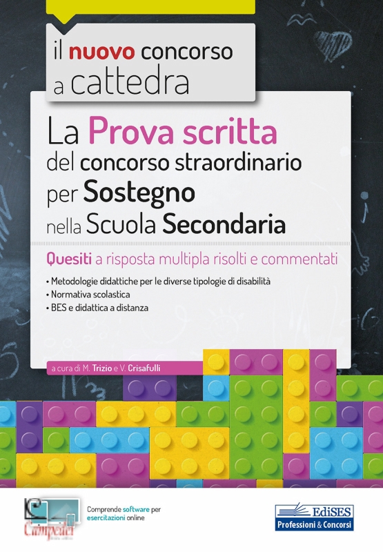 Il nuovo concorso a cattedra. La prova scritta del concorso straordinario per Sostegno nella Scuola secondaria. Quesiti a risposta multipla risolti e commentati. Con software di simulazione Editore: Edises professioni & concorsi Isbn: 9788836220359 Categoria: Educazione Numero pagine: 420 Data di Uscita: 27/05/2020 Collana: Concorso a cattedra Un'ampia raccolta di quiz a risposta multipla suddivisi per area disciplinare e correda ti da un sintetico ma puntuale richiamo teorico. La prima parte contiene una sezione dedicata alle specifiche competenze in ambito psico-pedagogico e didattico: partendo dalle nozioni di pedagogia e didattica generale, si affrontano temi quali intelligenza emotiva, creatività e pensiero divergente. La seconda parte è dedicata all'ambito della conoscenza delle disabilità e degli altri BES in una logica bio-psico-sociale. La terza parte affronta l'ambito della normativa sull'integrazione e sui bisogni educati vi speciali, l'organizzazione scolastica della scuola secondaria di primo e secondo grado. La quarta parte è dedicata alla capacità di lettura e alla comprensione del testo in lingua inglese mentre l'ultima parte contiene tre esercitazioni che favoriscono la verifica trasversale delle conoscenze su tutti gli argomenti trattati. Con software di simulazione della prova scritta. Libreria Campedèl Belluno | |