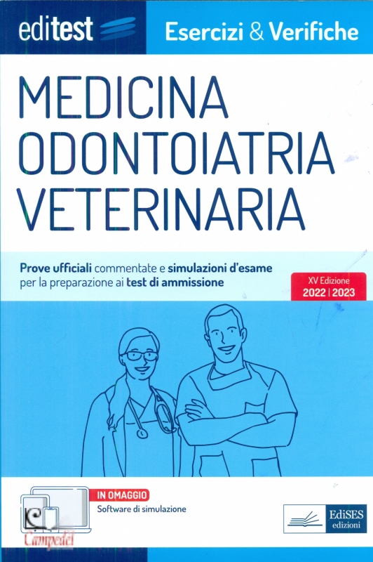 Test ammissione Medicina, Odontoiatria, Veterinaria 2022: esercizi e verifiche. Con i test ufficiali risolti e commentati. Con software di simulazione Editore: Editest Collana: Ediest Ammissioni universitarie Edizione: 15 Data di Pubblicazione: gennaio 2022 La nuova edizione dell'eserciziario per la preparazione ai test di ammissione a Medicina, Odontoiatria e Veterinaria 2022 contiene le prove ufficiali (dal 2012 a oggi) risolte e commenta te, per consentire di familiarizzare con le tipologie di quiz generalmente somministrate e favorire il ripasso delle nozioni teoriche. Un’ampia parte del volume č dedicata a una serie di simulazioni, utili per esercitarsi nella soluzione di quiz analoghi a quelli ufficiali e per una verifica trasversale delle conoscenze. In omaggio un approfondimento dedicato ai quiz commentati di attualitą e cultura generale e la nuova versione del software di simulazione: al termine di ogni prova il sistema ti dice in quale Ateneo saresti entrato sulla base dei punteggi minimi di accesso dell'anno scorso. Le informazioni potranno esserti utili per scegliere le sedi da inserire come preferenza in fase di iscrizione ai test 2022. Libreria Campedčl Belluno | |