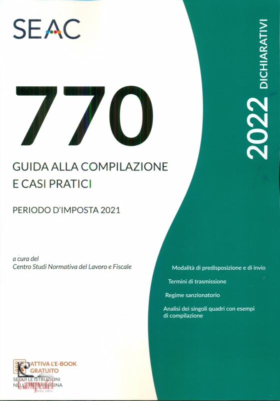 IL MOD. 770/2022 - Guida alla Compilazione e Casi Pratici MODALITÀ DI PREDISPOSIZIONE E DI INVIO TERMINI DI TRASMISSIONE REGIME SANZIONATORIO ANALISI DEI SINGOLI QUADRI CON ESEMPI DI COMPILAZIONE Il Mod. 770/2022 deve essere utilizzato dai sostituti d’imposta per comunicare in via telematica, entro il 31 ottobre 2022, all’Agenzia delle Entrate, i dati fiscali relativi alle ritenute operate nell’anno 2021, i relativi versamenti e le eventuali compensazioni effettuate nonché il riepilogo dei crediti. Nei Quadri ST e SV deve essere fornita specifica indicazione anche dei versamenti, effettuati nel corso del 2021, in relazione ai quali i sostituti d’imposta si sono avvalsi della sospensione dei termini a fronte dell’emergenza epidemiologica COVID-19, così come deve essere data indicazione degli importi che non risultano ancora versati al termine del periodo d’imposta 2021 in forza delle predette sospensioni. Il Mod. 770 deve essere, inoltre, utilizzato da gli intermediari e dagli altri soggetti che intervengono in operazioni fiscalmente rilevanti, tenuti, sulla base di normative specifiche, a comunicare i dati relativi alle ritenute operate su dividendi, proventi da partecipazione, redditi di capitale erogati nell’anno 2021, ricomprendendo le ritenute su pagamenti relativi a bonifici disposti per il recupero del patrimonio edilizio, per interventi di risparmio energetico, per interventi agevolati 110% e sulle locazioni brevi inserite all’interno della Certificazione Unica, nonché operazioni di natura finanziaria effettuate nello stesso periodo, i relativi versamenti e le eventuali compensazioni operate ed i crediti d’imposta utilizzati. Con l’invio dei dati contenuti nel Mod. 770, a completamento, in molti casi, dei dati trasmessi all’Agenzia delle Entrate con le Certificazioni Uniche, i soggetti sopra individuati assolvono all’obbligo dichiarativo a loro carico (art. 4, comma 3-bis, D.P.R. n. 322/1998). Il presente testo, partendo dall’inquadramento degli aspetti generali (soggetti interessati ed esclusi, modalità e termini di presentazione della dichiarazione, regime sanzionatorio, ecc.) si sviluppa in distinte sezioni che analizzano le modalità di compilazione dei singoli quadri del modello. A completamento dell’analisi teorica, al lettore viene proposta una vasta raccolta di esempi pratici di compilazione con particolare attenzione alle situazioni imputabili alle misure sospensive adottate dal Legislatore per supportare le imprese a fronte dell’emergenza epidemiologica COVID-19, nonché con riferimento alle casistiche che, con maggiore frequenza, si presentano ordinariamente. Libreria Campedèl Belluno Acquista | |