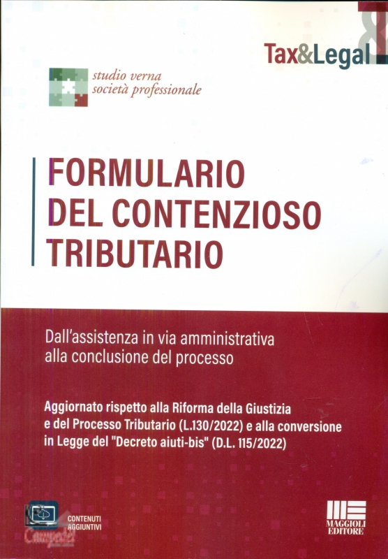 Formulario del contenzioso tributario. Dall'assistenza in via amministrativa alla conclusione del processo. Con espansione online Autore: Studio Legale Verna. Società professionale • Editore: Maggioli Editore • Collana: Tax & Legal • Formulario, giunto alla sua ottava edizione, rappresenta un indispensabile strumento di rapida consultazione per il difensore tributario. Il testo consta di circa 150 formule che spaziano dall'attività di assistenza nei procedimenti ava nti gli uffici fiscali fino all'eventuale arrivo della procedura in Corte di Cassazione, senza tralasciare gli aspetti organizzativi del lavoro del difensore tributario. Accanto ai moduli standard utilizzabili per tutti gli atti previsti nei procedimenti amministrativi e contenziosi in materia tributaria, sono proposte formule concernenti particolari situazioni controverse come ad esempio i rimborsi di IVA, l'onere della prova, il precontraddittorio e il contraddittorio, le c.d. frodi carosello, i falsi es portatori abituali e la violazione dello statuto del contribuente. Il procedimento amministrativo tributario e il relativo contenzioso richiedono ordine nella raccolta ed archiviazione dei documenti, un loro esame meticoloso, l'individuazione tempestiva del nocciolo delle questioni controverse, gli argomenti che possono facilmente far presa sull'ufficio tributario e all'occorrenza sul giudice, la raccolta di tutte le prove documentali disponibili, il tutto utilizzando doti di sintesi per un'esposizione semplice di fatti e motivi, condotte equilibrate e trasparenti e un pizzico di fortuna. Questo manuale offre non solo un approccio standard per l'apertura e la chiusura di qualità degli atti, ma anche soluzioni innovative, talvolta contrastate o non ancora consolidate, che si innestano nel rapporto collaborativo o causidico con l'amministrazione finanziaria. La possibilità di scaricare le formule in formato compilabile e stampabile consente, inoltre, a ciascun professionista di attribuire alle procedure la propria impronta ed esperienza, in modo da creare all'occorrenza un prodotto personalizzato e sicuramente migliore, perché frutto di ulteriori contributi di pratica e di cultura. Un indice analitico, con oltre 110 parole chiave, facilita infine la ricerca del modulo che serve. Libreria Campedèl Belluno | |