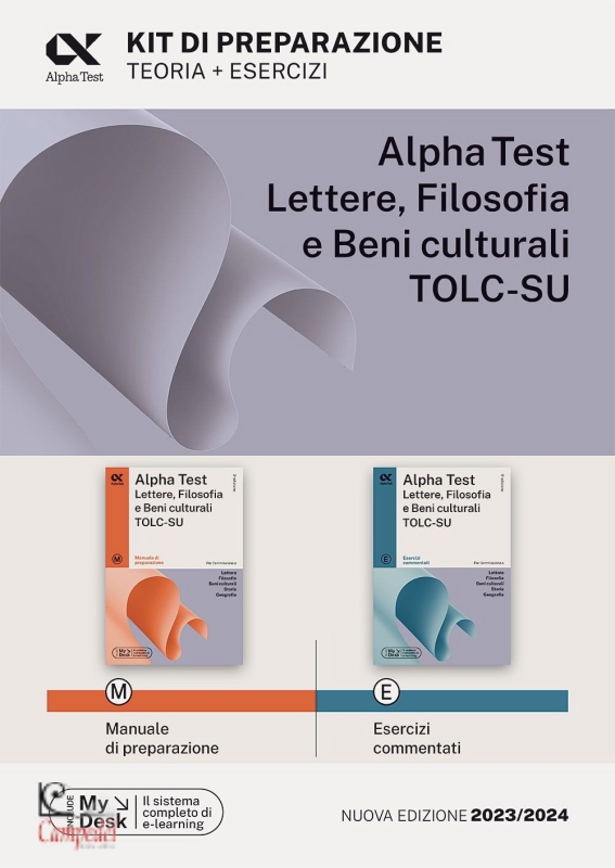 Alpha Test Lettere, Filosofia e Beni Culturali TOLC-SU. Kit di preparazione. Ediz. MyDesk. Con espansione online • Autore: Borgonovo Paola , Goffetti Mattia , Lanzoni Fausto • Editore: Alpha Test • Data di Uscita: 03/03/2023 • Collana: TestUniversitari Alpha Test Lettere, Filosofia e Beni Culturali TOLC-SU. Kit di preparazione. Per l'ammissione a Lettere, Filosofia, Beni Culturali, Storia, Geografia. L'edizione 2023/2024 del Kit di preparazione è una soluzione completa e aggiornata per prepararsi ai test di ammissione ai corsi di laurea dell'area umanistica: classi di laurea di Lettere, Filosofia, Beni culturali, Storia e Geografia (TOLC-SU e test di ateneo). Cosa comprende il Kit? Il manuale, con la teoria essenziale per studiare e ripassare ogni argomento richiesto nel test e con accesso esclusivo a contenuti digitali; un eserciziario con centinaia di domande commentate fruibili anche dal simulatore online. Ogni libro consente l'accesso a MyDesk, l'esclusiva piattaforma digitale per potenziare la preparazione. Libreria Campedèl Belluno | |