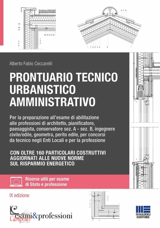 Ceccarelli Alberto Fabio Prontuario tecnico urbanistico amministrativo. Per la preparazione all'esame di abilitazione alle professioni di: architetto, pianificatore, paesaggista, conservatore sez. A - sez. B, ingegnere civile/edile, geometra, perito edile, per concorsi da tecnico Editore: Maggioli Editore Collana: Esami e professioni Data di pubblicazione: 30/11/1999 La nona edizione del Prontuario tecnico urbanistico amministrativo, pur conservando inalterate le caratteristiche di chiarezza ed esaustività necessarie a rispondere ai vari quesiti delle prove d’esame di Stato delle professioni tecniche, presenta numerose novità. Il volume tiene conto, infatti, delle più recenti modifiche normative, legate anche ai quesiti posti nelle varie sedi per l’abilitazione professionale. Più precisamente: • il Nuovo Codice appalti, con la digitalizzazione degli appalti pubblici, le nuove fasi della progettazione e tutte le innovazioni introdotte; • le nuove norme sull’Equo Compenso per i professionisti tecnici; • il Testo unico edilizia, aggiornato con alcune precisazioni legate ai quesiti d’esame, oltre agli obblighi relativi alle costruzioni sismiche; • il Codice dei beni culturali e ambientali, con specifiche precisazioni e approfondimenti; • le Norme Tecniche Costruzioni 2018, con le nuove metodologie di calcolo e specifici aggiornamenti e precisazioni, legate alla circolare 21/01/2019; • gli Ordini professionali, con le specifiche attività professionali, gli obblighi di formazione continua aggiornati al 2024 e le nuove norme deontologiche per architetti e ingegneri; • il capitolo di tecnologia con diverse modifiche, legate alle costruzioni in c.a. e ai nuovi obblighi dettati dalle NTC 2018. Di fatto, tutti i capitoli e paragrafi del testo hanno visto una rilettura e specifici aggiornamenti in funzione della modalità straordinaria d’esame, in vigore dal 2020, confermata sembra anche per il 2024, perché riportata nel decreto milleproroghe di fine 2023, in corso di approvazione. Ai fini dell’esame, inoltre, oltre alla Guida Pratica alla progettazione IX ed., collegata al presente testo è presente sul sito web esamearchitetto.it, una sezione dedicata alle modalità d’esame, alle statistiche di promozione delle varie sedi e alle principali domande poste per architetti e ingegneri aggiornate al 2023, oltre a materiali aggiuntivi ai fini della preparazione. Libreria Campedèl Belluno Acquista | |