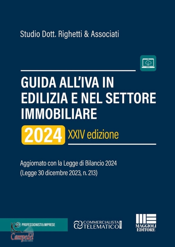 Guida all'IVA in edilizia e nel settore immobiliare 2024. Aggiornato con la Legge di Bilancio 2024 (Legge 30 dicembre 2023, n. 213). Con espansione online Editore: Maggioli Editore Collana: Guide operative Data di pubblicazione: 31/01/2024 Numero pagine: 230 Questa Guida operativa affronta le varie problematiche relative al regime Iva (nonché Imposta di Registro e Ipo-Catastali) nel settore dell'edilizia e immobiliare in genere, alla luce delle novità introdotte dalla Legge di Bilancio 2024 e delle più recenti circolari, risoluzioni e sentenze emanate nel corso del 2023. Fulcro della trattazione sono gli Schemi riassuntivi, suddivisi per tipologie di immobili e di operazione, che sintetizzano il maggior numero di casistiche possibili in un'unica tabella facile da consultare. Completato da una serie di facsimili per la richiesta, da parte dell'acquirente/committente, dell'applicazione dell'aliquota Iva agevolata, il testo esamina gli argomenti più significativi concernenti l'Iva in edilizia, senza tralasciare la normativa di riferimento. Libreria Campedèl Belluno Acquista | |
