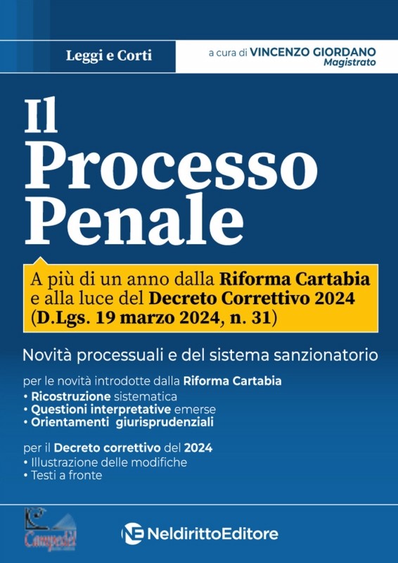 Il processo penale. Profili processuali e sostanziali a più di un anno della riforma Cartabia e alla luce del Decreto Correttivo 2024 a cura di V. Giordano Editore: Neldiritto Editore Collana: Leggi e Corti Data di Pubblicazione: 21 marzo 2024 Dopo più di un anno dalla Riforma Cartabia (D.Lgs. 10 ottobre 2022, n. 150), sono numerose le questioni interpretative emerse, già esaminate in giurisprudenza. Al contempo, il legislatore è intervenuto con il Decreto Correttivo de l 2024 con l’obiettivo di semplificare taluni meccanismi processuali, oltre che di risolvere i problemi di coordinamento emersi in fase di prima applicazione. Lo stesso Decreto Correttivo ha introdotto novità anche sul versante sostanziale. Il volume Il processo penale a più di un anno dalla riforma Cartabia e alla luce del Decreto correttivo del 2024, Profili processuali e sostanziali, Neldiritto Editore, rivolto a avvocati, magistrati, studiosi, è stato pensato e predisposto per rispondere ad un duplice obiettivo: - ricostruire il dibattito emerso su numerosissimi aspetti interessati dalla Riforma Cartabia, dando atto degli indirizzi interpretativi emersi e delle posizioni espresse dalla giurisprudenza; - dare al contempo atto delle novità sostanziali e processuali introdotte dal Decreto Correttivo Cartabia del 2024 (riportate con testi a fronte), con un’analisi diretta anche a coordinare le stesse innovazioni del 2024 con gli indirizzi interpretativi formatisi sulle norme introdotte o modificate dal Decreto Cartabia (D.Lgs. 10 ottobre 2022, n. 150). Libreria Campedèl Belluno Acquista | |