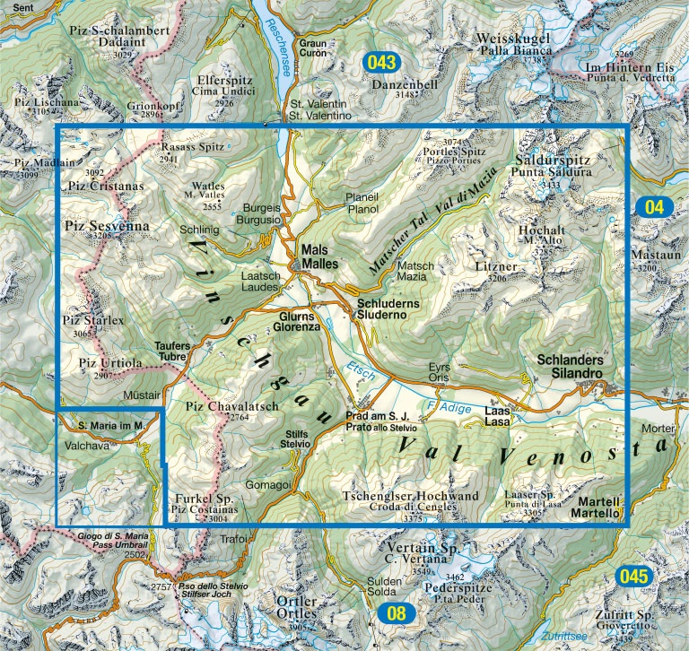 CARTA TOPOGRAFICA, 044 Val Venosta  Malles