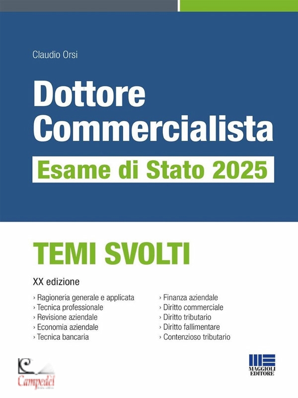 Dottore commercialista. Esame di Stato 2025. Temi svolti di Orsi Claudio Editore: Maggioli Editore Collana: Concorsi&Esami Questa raccolta di temi, giunta alla XX edizione, è uno strumento sintetico, ma, al tempo stesso, completo, per la preparazione dei candidati all'Esame di abilitazione per Commercialista. Il testo propone elaborati che tengono conto delle più recenti innovazioni apportate nei vari ambiti disciplinari, presentando anche temi relativi alla finanza aziendale , disciplina molto gettonata dalle Commissioni esaminatrici. In aggiunta ai temi per le materie aziendali e giuridiche, che offrono la massima varietà di argomenti, il volume presenta varie esercitazioni di ragioneria generale e applicata, tecnica professionale e contenzioso tributario. Le tracce proposte rientrano tra quelle che più di frequente sono assegnate in sede di esame di Stato. La proposizione di uno schema di analisi del singolo quesito permette poi al lettore di acquisire un metodo p er affrontare in maniera razionale la prova. Numerosi elaborati hanno carattere interdisciplinare, sia per sollecitare il candidato a non procedere a uno studio nozionistico, sia perché temi meramente descrittivi si limiterebbero a replicare quanto può dire un qualunque volume utilizzato dal candidato per la preparazione all'esame. Questa raccolta si dimostra in ogni suo aspetto uno strumento di sicura utilità per tutti i candidati. Libreria Campedèl Belluno Acquista | |