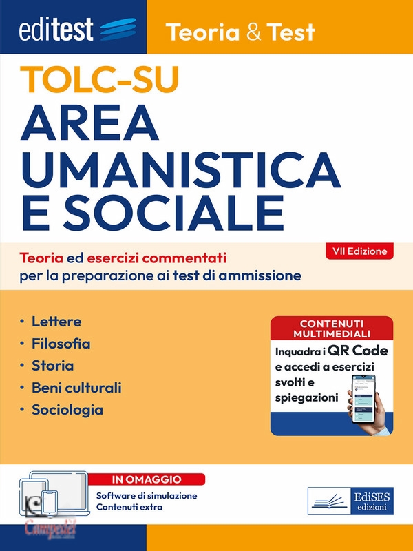 Editest TOLC-SU Area umanistica e sociale. Teoria ed esercizi commentati per la preparazione ai test di ammissione. Con software di simulazione Editore: EDITEST Collana: EdiTest Ammissioni universitarie Manuale per la preparazione ai test di ammissione ai corsi di laurea di Area umanistica e sociale, valido per il TOLC-SU. Il libro contiene tutte le conoscenze teoriche necessarie e una raccolta di quiz svolti, oltre a una serie di informazioni utili relative alla struttura del test e all’offerta formativa. La prima sezione, Studio, comprende tutte le materie d’esame (Logica, Cultura generale e storico-letteraria) trattate in maniera approfondita sulla base delle prove degli ultimi anni e all'inizio di ogni capitolo č presente un QR code che rimanda a contenuti aggiuntivi: esercizi, spiegazioni e approfondimenti; la seconda sezione, Esercitazione, raccoglie numerosi quesiti risolti e commentati. I quiz, suddivisi per materia e argomento, consentono un utile ripasso delle nozioni teoriche e offrono la possibilitą di mettersi alla prova con domande simili a quelle realmente somministrate. In omaggio il software di simulazione che replica la struttura del test reale. Libreria Campedčl Belluno Acquista | |