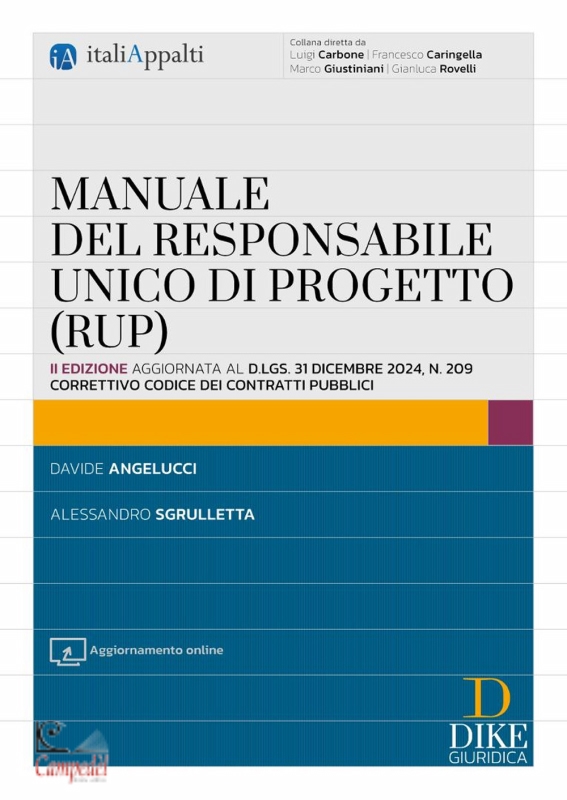 Angelucci Davide , Sgrulletta Alessandro Manuale del responsabile unico di progetto (RUP). Con Aggiornamento online Editore: Dike Giuridica Data di pubblicazione: 17/03/2025 Numero pagine: 426 Collana: Italiappalti.it Il Manuale del responsabile unico di progetto (RUP): offre una corposa e approfondita analisi della disciplina introdotta dal nuovo codice dei contratti pubblici (D.Lgs.36/2023), come modificato dal recente correttivo D.Lgs.31 dicembre 2024, n.209 illustra la nuova impostazione normativa e delle conseguenze applicative propone puntuali risposte alle domande degli operatori e degli studiosi alla luce dei primi orientamenti giurisprudenziali e delle pił autorevoli interpretazioni dottrinali analizza, in modo operativo e pratico, le gravose e delicate competenze del RUP esamina i singoli compiti per gli appalti pubblici di lavori, servizi e forniture nella fase di programmazione, progettazione, affidamento del singolo intervento e nella fase dell'esecuzione scrutina i profili della responsabilitą civile, penale ed "erariale" contiene, inoltre, una preziosa appendice normativa, contenente le disposizioni utili costituisce per gli operatori (RUP, magistrati amministrativi, pubbliche amministrazioni, avvocati) un'utilissima guida per la comprensione e l'applicazione della disciplina prevede la possibilitą di rivolgere agli autori le domande sugli argomenti esaminati nel testo e di ricevere la relativa risposta all'interno di un video tutorial, in cu i saranno analizzate le questioni sollevate dai lettori, accedendo all'area riservata online Il Manuale del responsabile unico di progetto (RUP) permette inoltre di consultare online gli aggiornamenti nomativi e giurisprudenziali che dovessero sopravvenire. Libreria Campedčl Belluno Acquista | |