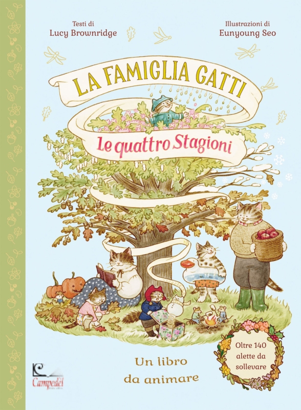 Illustrazioni di Seop Eungoung - La famiglia gatti le quattro stagioni con alette da sollevare