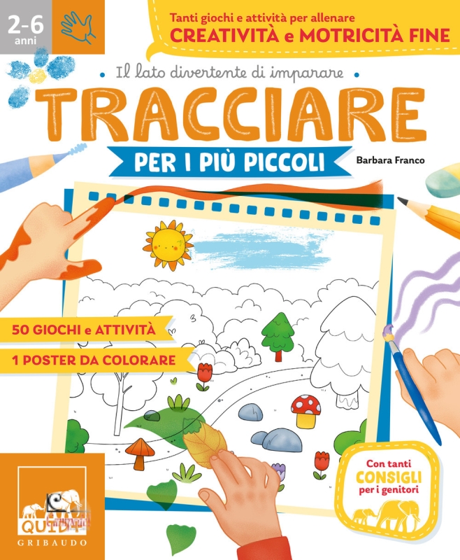 Tracciare per i più piccoli. tanti giochi e attività per allenare creatività e motricità fine di: Franco Barbara Edito da: Gribaudo Collana: Quid+ Quante volte abbiamo chiesto ai nostri bambini, spesso già a partire dai due anni, se desiderano disegnare? Il disegno è quell'attività che compare spontaneamente nello sviluppo e che permette al bambino di rappresentare simbolicamente la realtà che lo circonda, supportando la sua conoscenza del mondo e la possibilità di esprimere sé st esso. I più piccoli inizialmente lasciano impronte e tracce con le dita di mani e piedi per puro piacere, poi sperimentano oggetti e diversi strumenti grafici e infine diventano capaci di guidare i segni sul foglio. Questo quaderno di attività è organizzato in tre sezioni, che aiuteranno il bambino ad acquisire e ad allenare le capacità propedeutiche al disegno e alla scrittura: "Traccio con il corpo", "Traccio con la natura" e "Traccio con gli oggetti". All'interno si trovano oltre 50 giochi e attività e 1 poster da colorare. Come per tutti i prodotti della linea QUID+, sono presenti anche tanti consigli per gli adulti, sulle tecniche pedagogiche utilizzate e su come continuare a divertirvi insieme nella vita di tutti i giorni! Età di lettura: da 2 anni. Libreria Campedèl Belluno Acquista | |