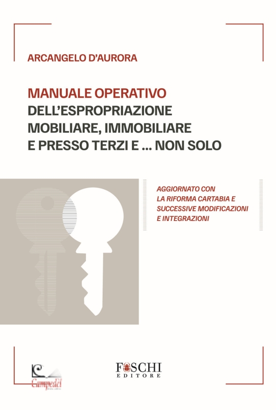 Manuale Operativo dell’Espropriazione Mobiliare, Immobiliare e presso Terzi e ... non solo di: Arcangelo D’Aurora Edito da: Foschi L’opera è una risorsa completa e aggiornata, particolarmente rilevante per professionisti del settore legale e per coloro che si occupano di esecuzioni forzate. Questo testo offre una panoramica approfondita delle procedure esecutive, includendo le ultime innovazioni introdotte dalla Riforma Cartabia e le successive modificazioni e integrazioni normative. Il manuale è progettato per fornire un supporto pratico e teorico, facilitando la comprensione e l'applicazione delle norme in contesti reali. La chiarezza espositiva e l’attenzione ai dettagli lo rendono uno strumento prezioso per avvocati, giudici, ufficiali giudiziari e studenti di giurisprudenza, aiutandoli a navigare con competenza nel complesso panorama delle espropriazioni e delle procedure esecutive in Italia. Sommario Titolo Primo. Atti preliminari all’esecuzione forzata Ti tolo Secondo. I regolamenti sul titolo esecutivo europeo Titolo terzo. Modi e forme dell’espropriazione forzata in generale Titolo quarto. Espropriazione mobiliare presso il debitore Titolo quinto: Esecuzione forzata presso terzi Titolo sesto Espropriazione immobiliare Titolo settimo: Esecuzione forzata nei confronti di pubbliche amministrazioni Titolo ottavo. Espropriazione di beni indivisi Titolo nono. Il sequestro Titolo decimo: Pignoramento di navi e aeromobili Titolo undicesimo: Pignoramento e custodia di Autoveicoli, motoveicoli e rimorchi Titolo dodicesimo. Espropriazione di quote societarie: disciplina giuridica Titolo tredicesimo. L’ingiunzione fiscale: disciplina, natura e applicazioni. Titolo quattordicesimo: Compensi spettanti agli ufficiali giudiziari Formulario 24 modelli | |
